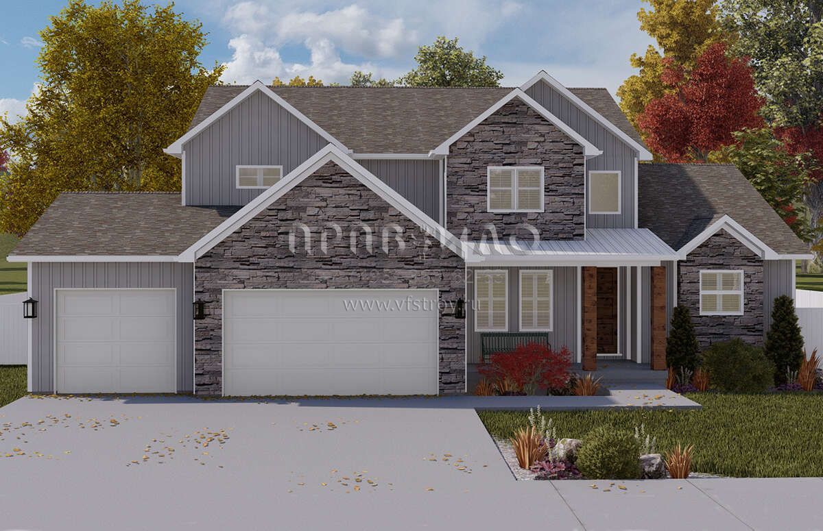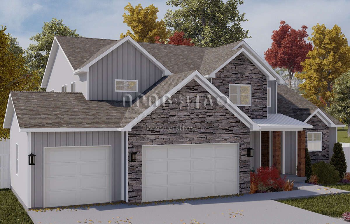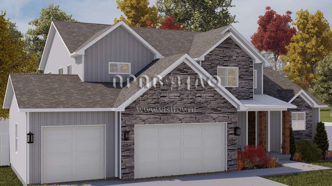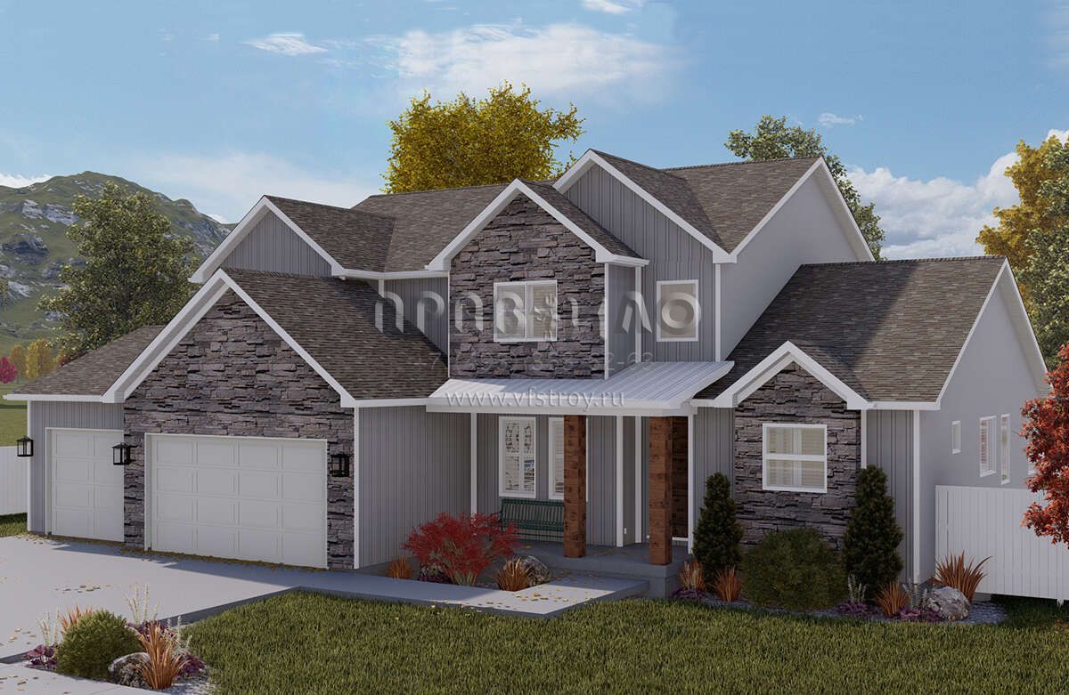 Проект двухэтажного дома с гаражом на две машины в американском стиле S5-249 (2802-00107)