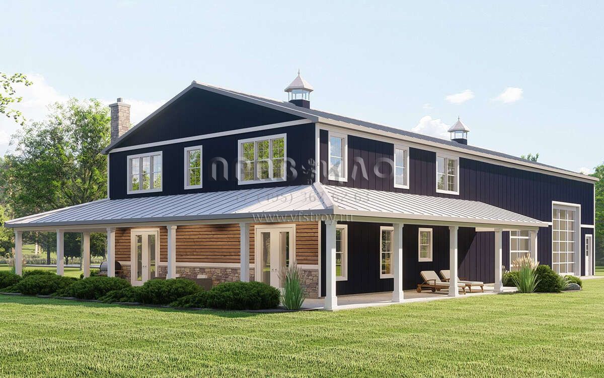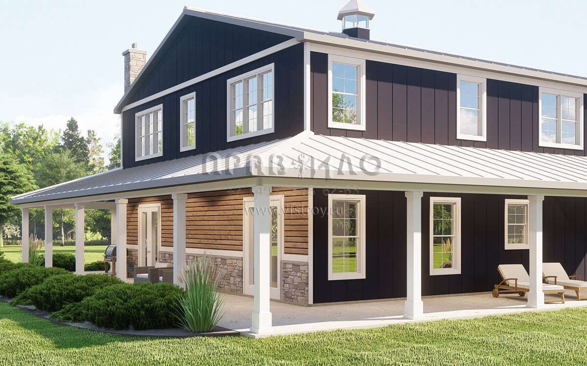 S5-249 (5032-00233) Это иностранный проект, для которого требуется адаптация под нормы, действующие в Российской Федерации. Вы видите проект дома в стиле БарнХаус. В этом доме сочетаются черты сельской постройки и аскетичность лофта. Внутри жильцы смогут проводить время с максимальным комфортом. Обратим внимание, что сейчас на планировках все размеры представлены в футах. Для перевода в метры вам необходимо значение в футах умножить на 0,3048.