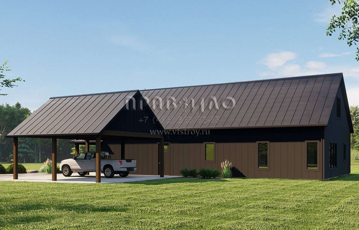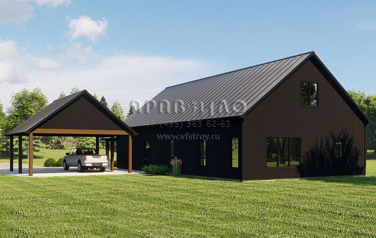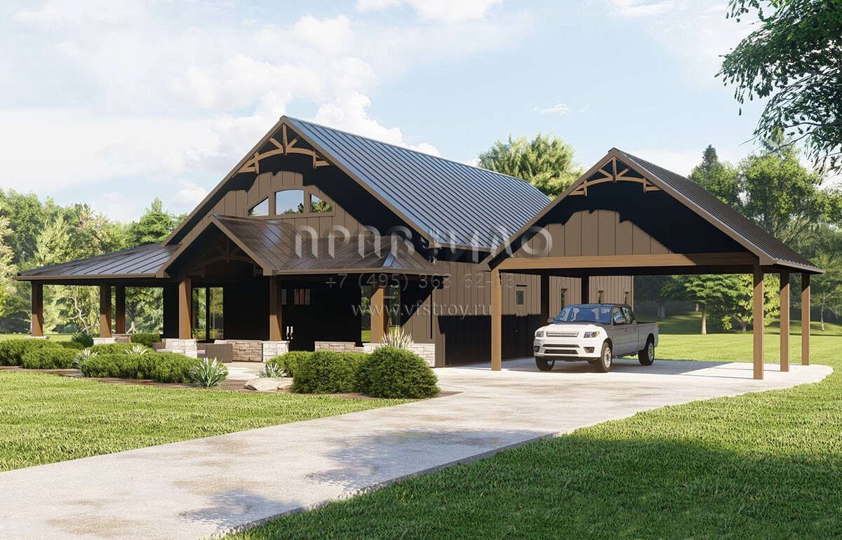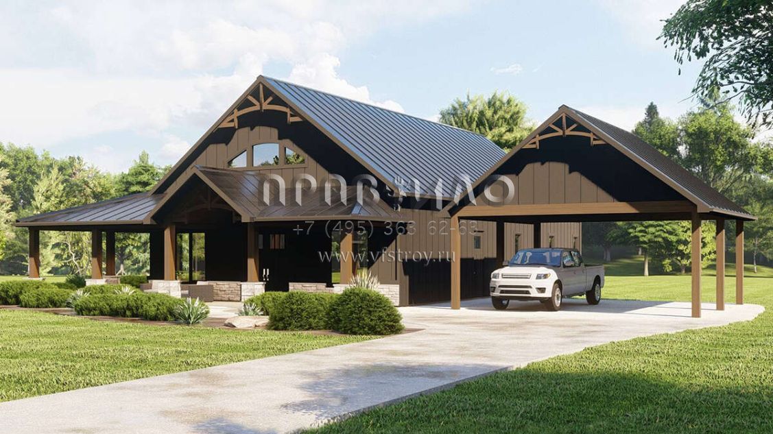Проект двухэтажного дома с гаражом на две машины в стиле БарнХаус S5-249 (5032-00244)