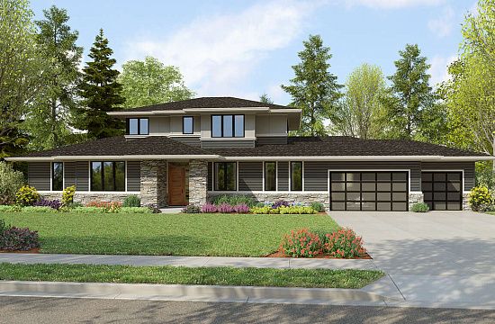 Проект двухэтажного дома с гаражом на две машины в стиле Ранчо S5-249 (6939-00011)