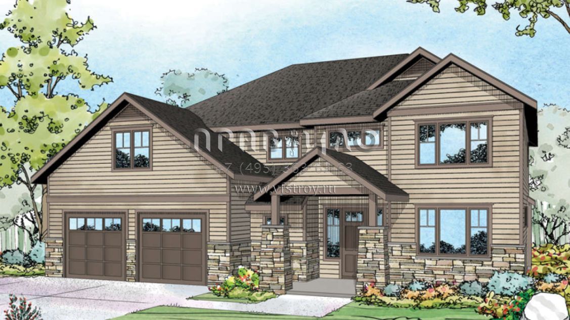 Проект двухэтажного дома с гаражом на три и более машин в американском стиле S5-250 (035-00654)
