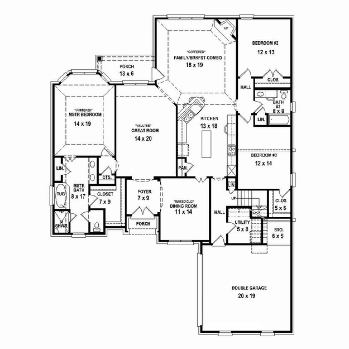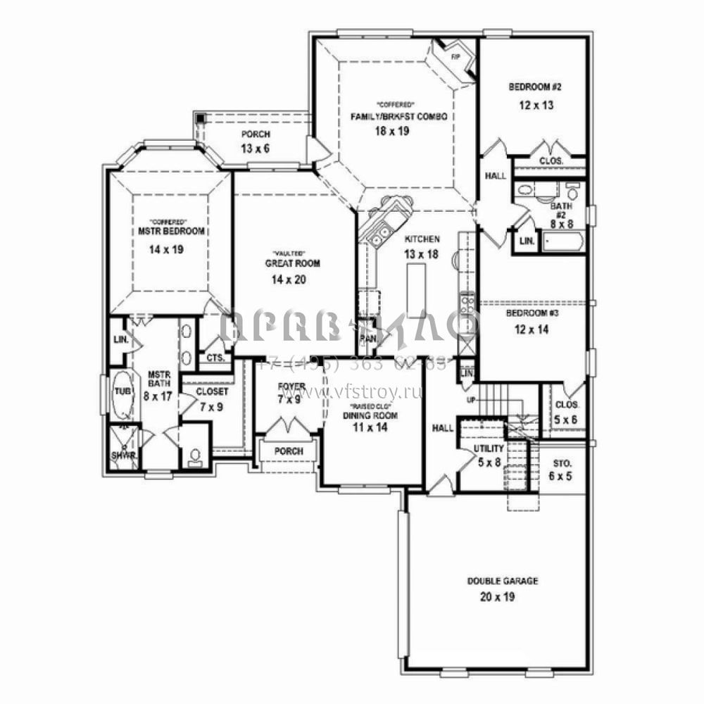 Проект двухэтажного дома с гаражом на две машины в стиле Ранчо S5-250 (053-02468)