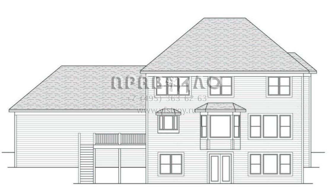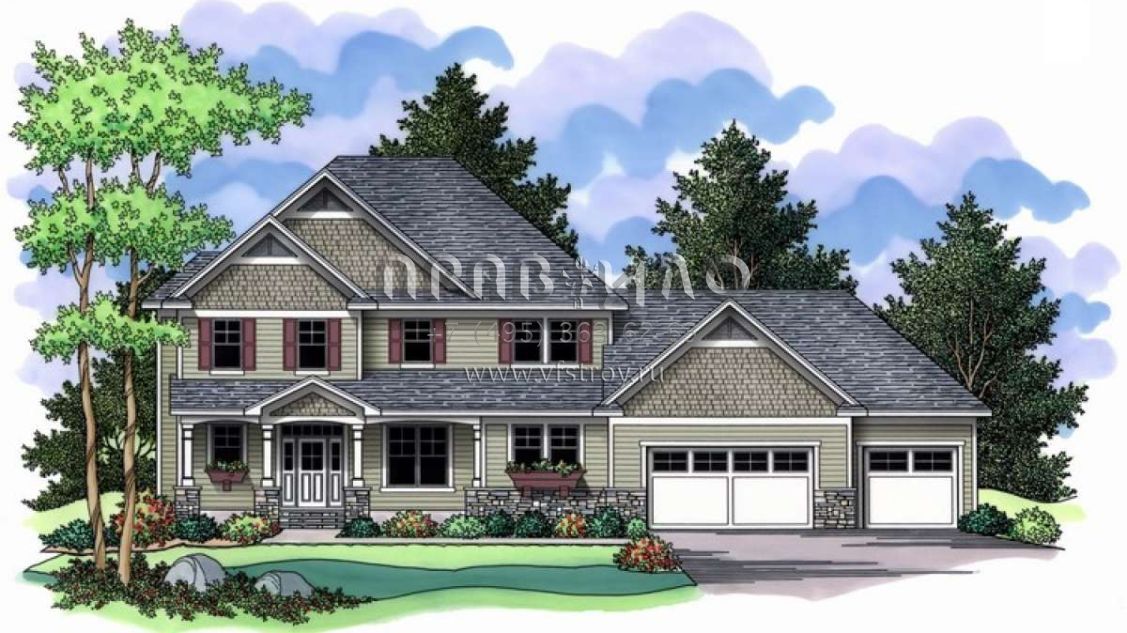 Проект двухэтажного дома с гаражом на три и более машин в американском стиле S5-250 (098-00015)