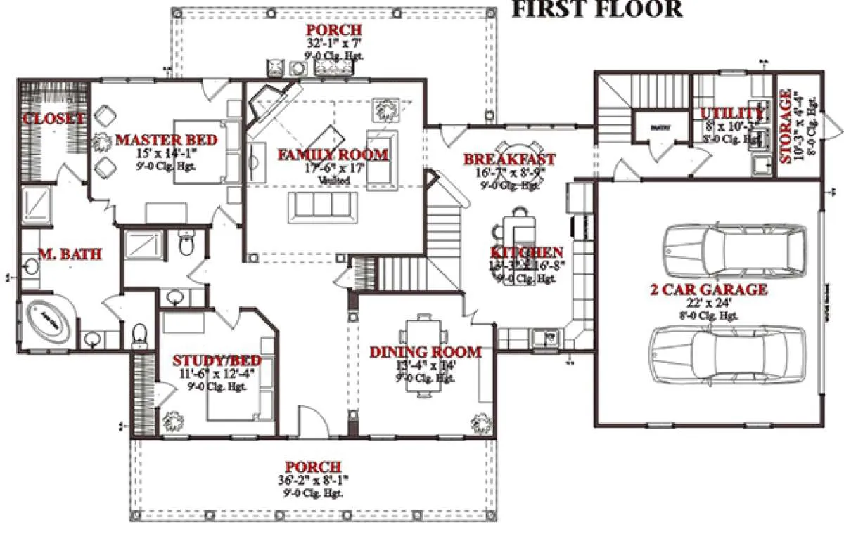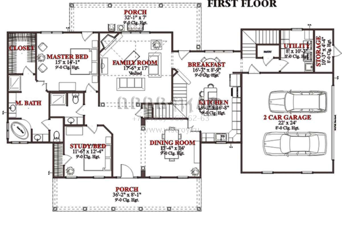 Проект двухэтажного дома с гаражом на две машины в стиле Ранчо S5-250 (1070-00052)