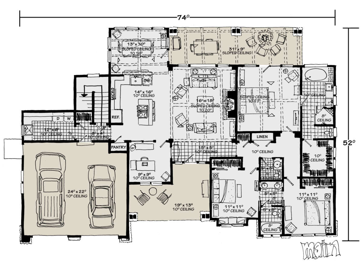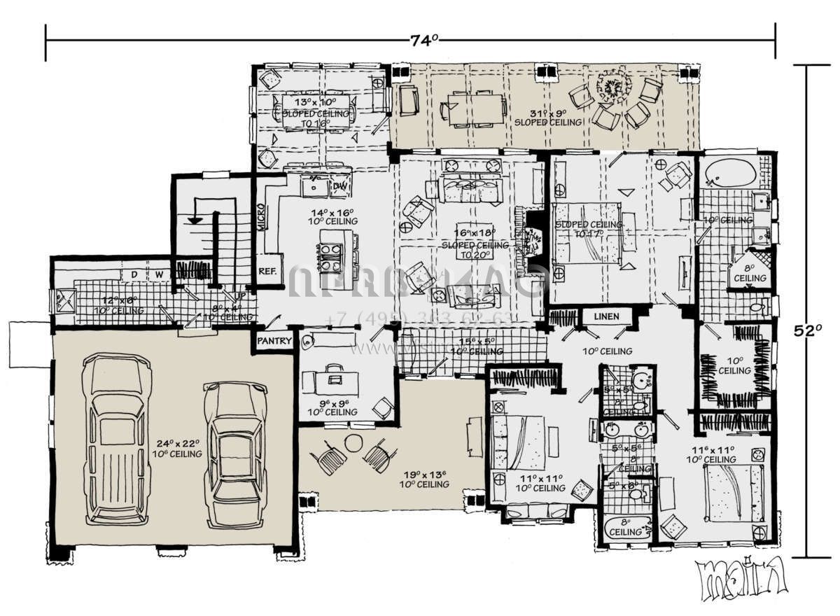 Поскольку этот проект разрабатывался иностранными архитекторами, для строительства дома требуется переработка проекта под действующие в России нормы. Данные визуализации проекта представлены для ознакомления с концепцией проекта. Проект разработан американским архитектурным бюро и представлен America's Best House Plans.