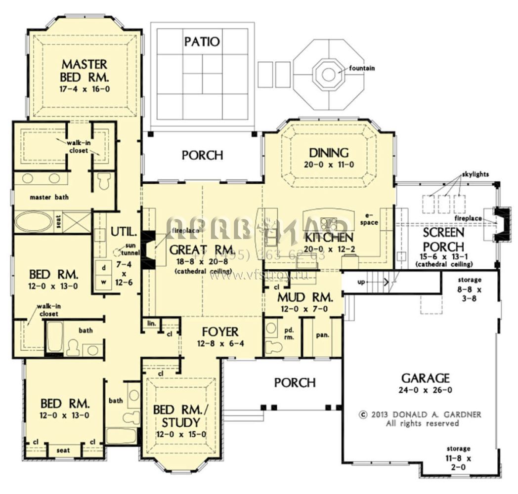 Проект одноэтажного дома с гаражом на две машины в стиле Ранчо S5-250 (2865-00323)