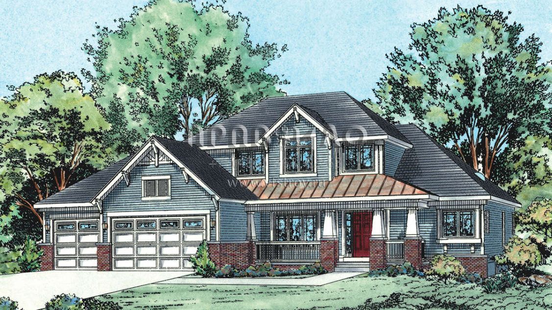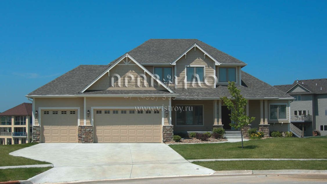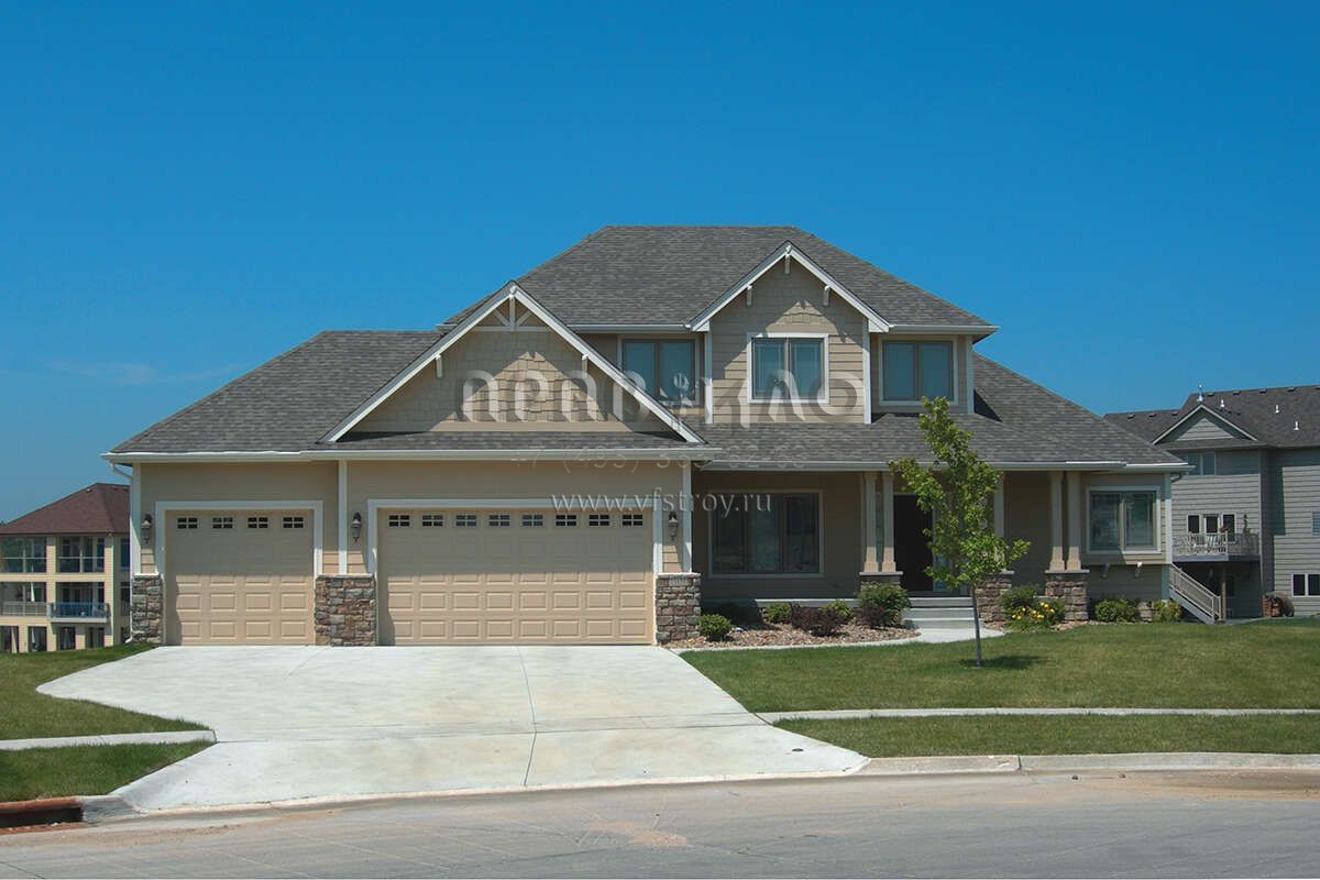 Проект двухэтажного дома с гаражом на три и более машин в американском стиле S5-250 (402-01716)