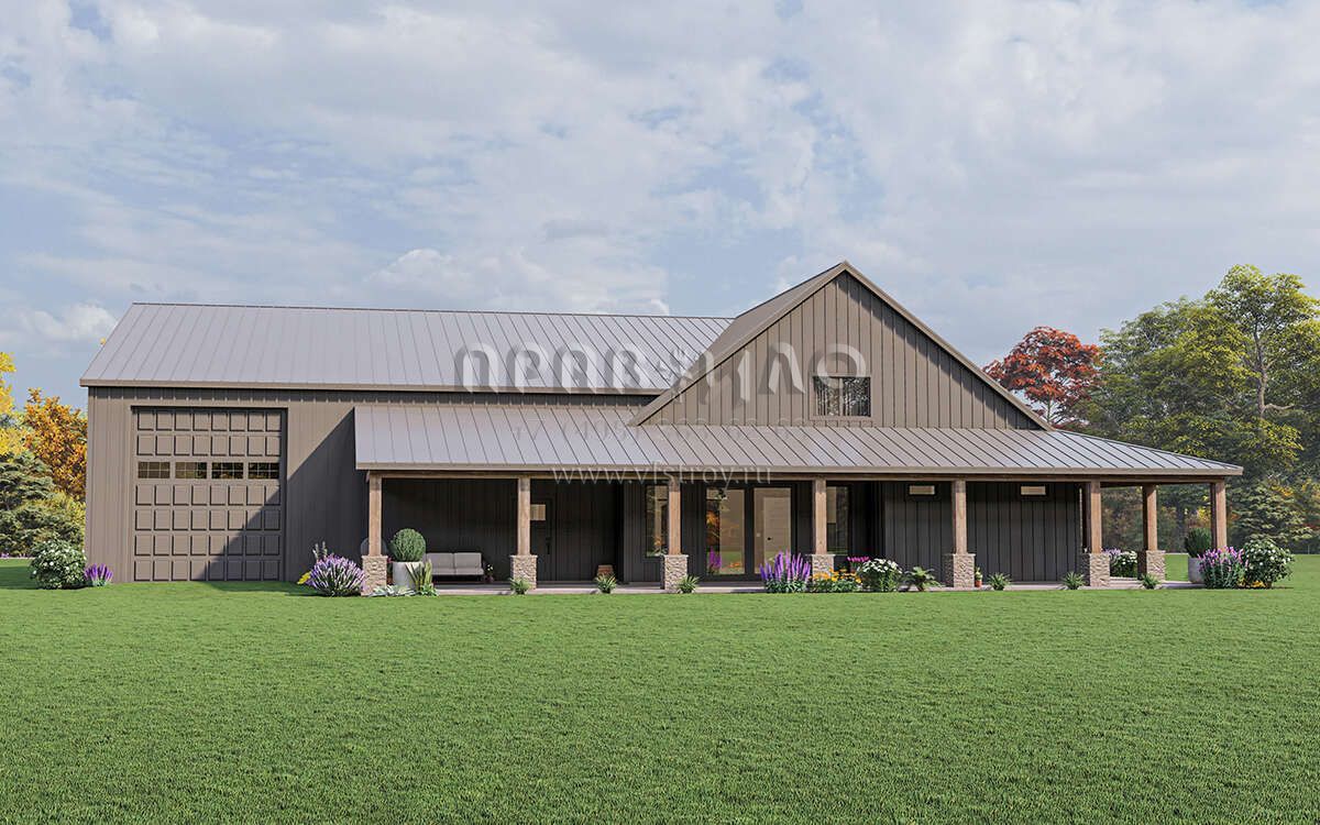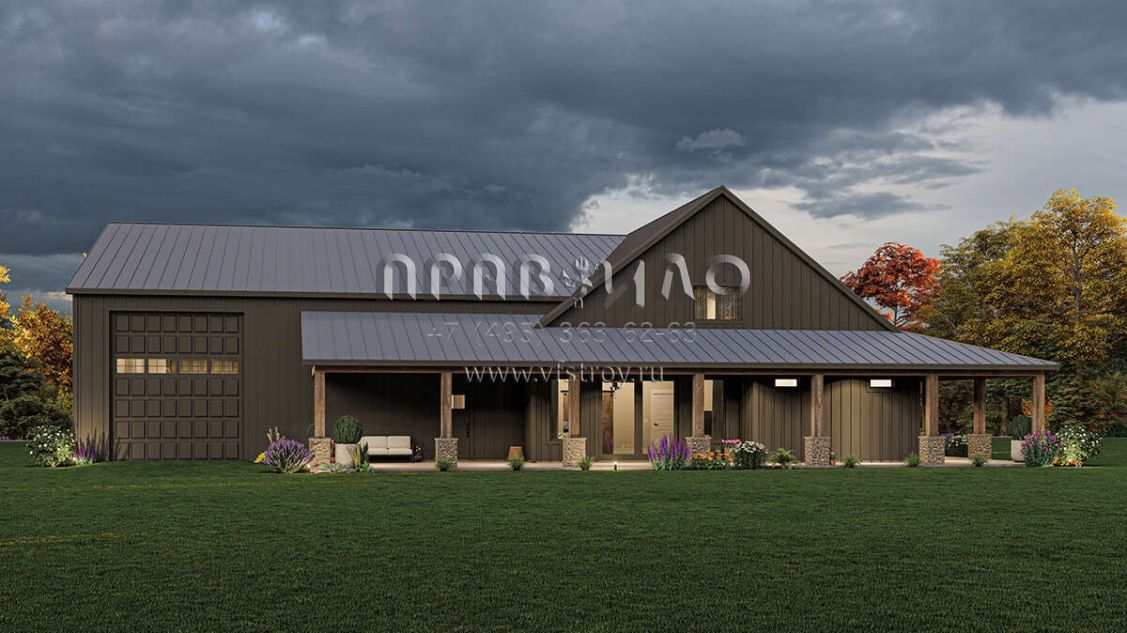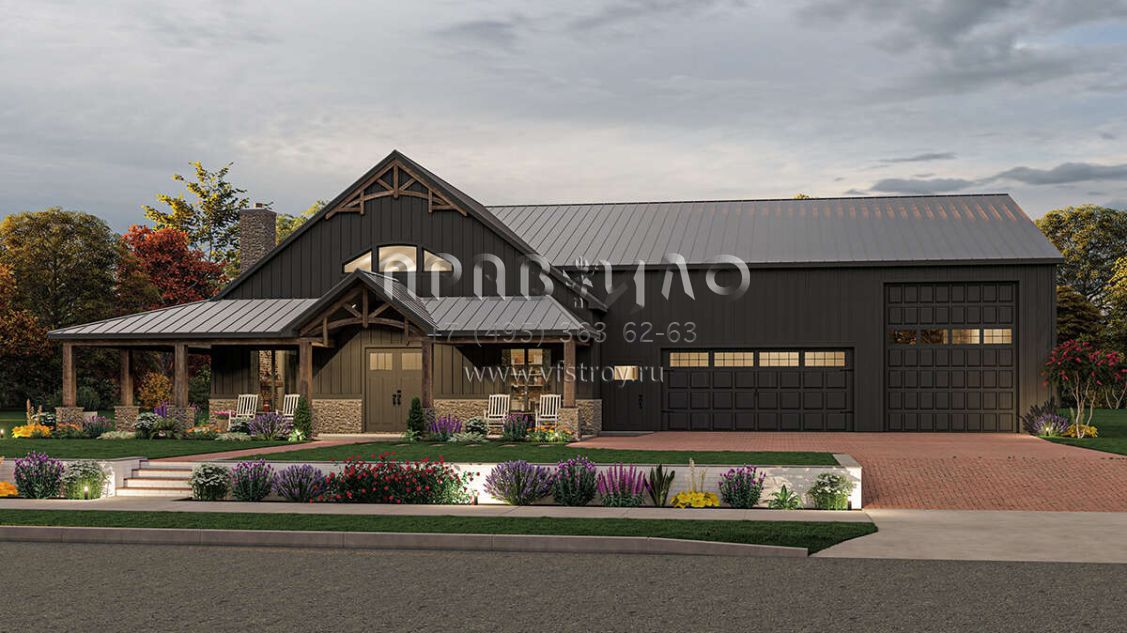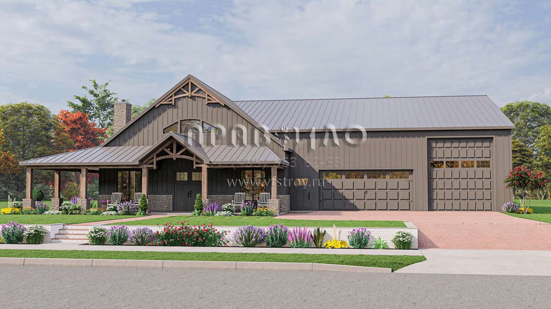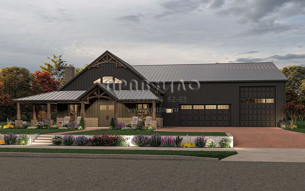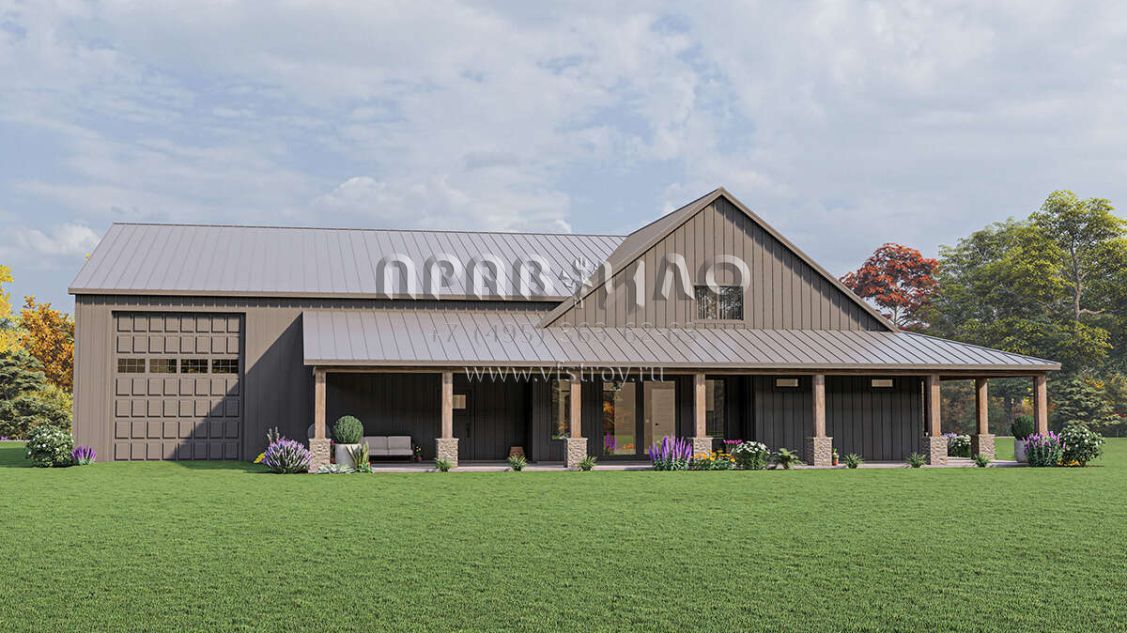Проект одноэтажного дома с гаражом на три и более машин в стиле БарнХаус S5-250 (5032-00172)