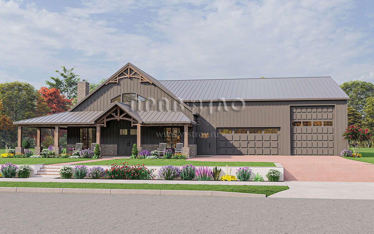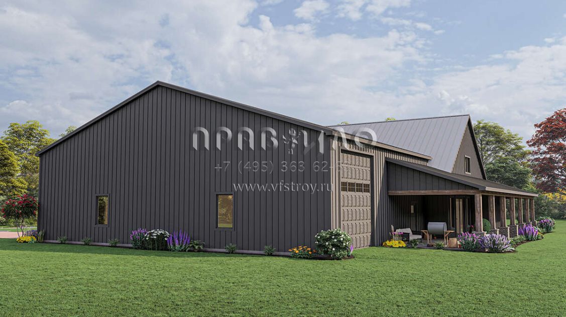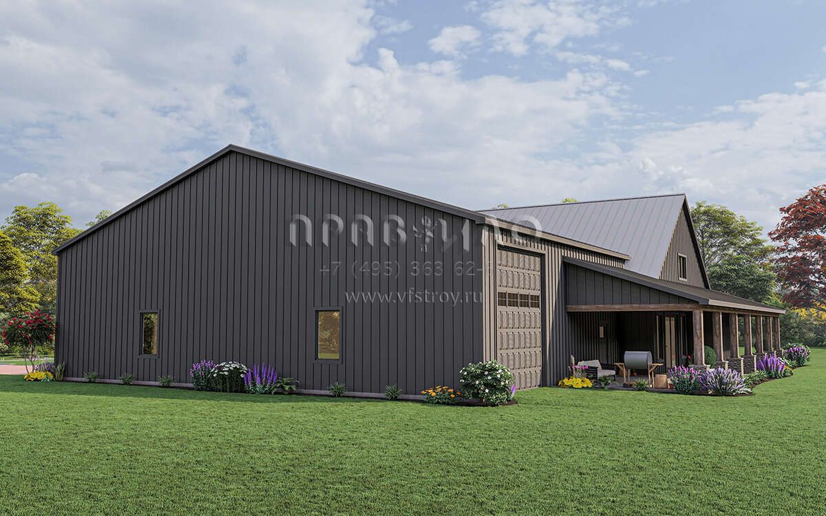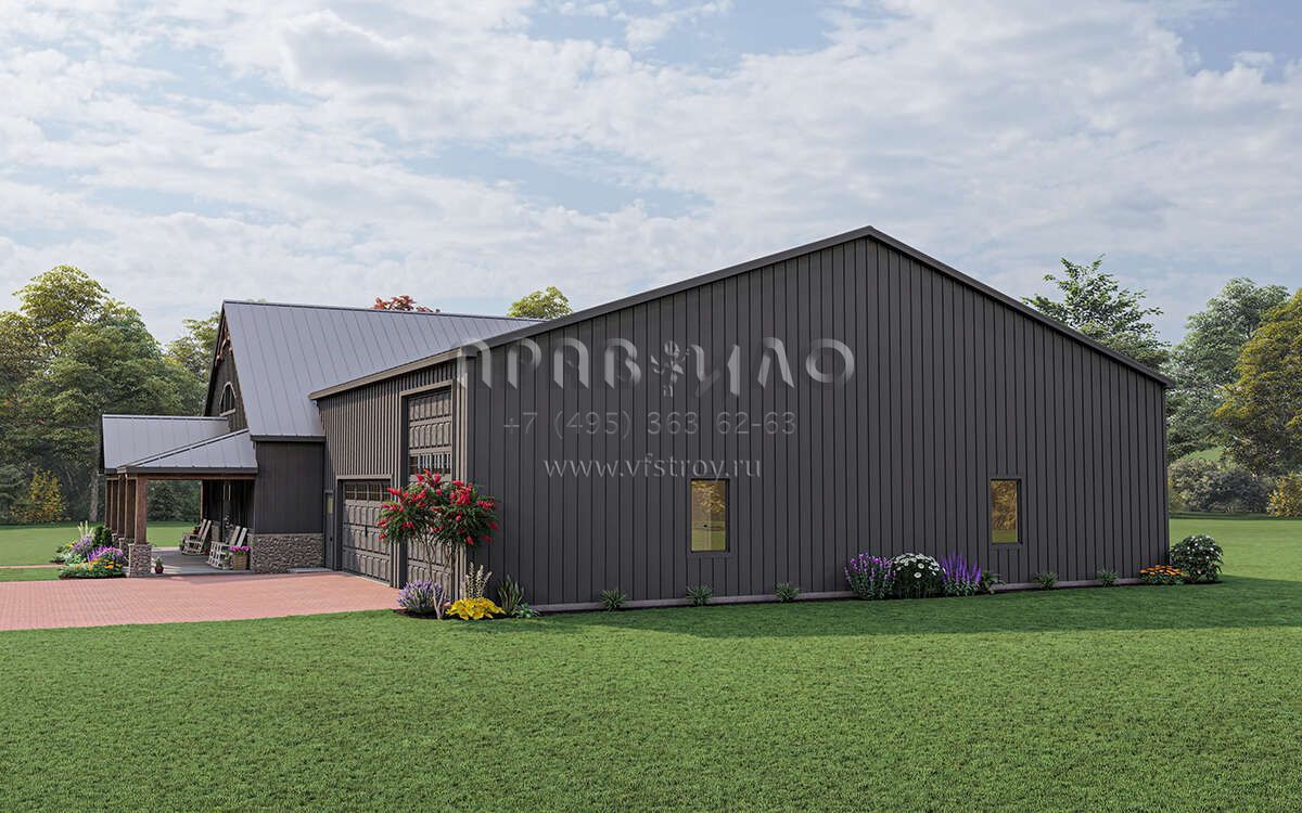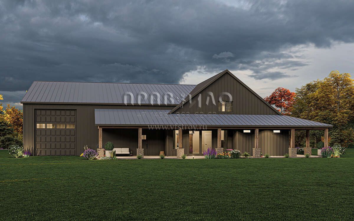 Проект одноэтажного дома с гаражом на три и более машин в стиле БарнХаус S5-250 (5032-00172)