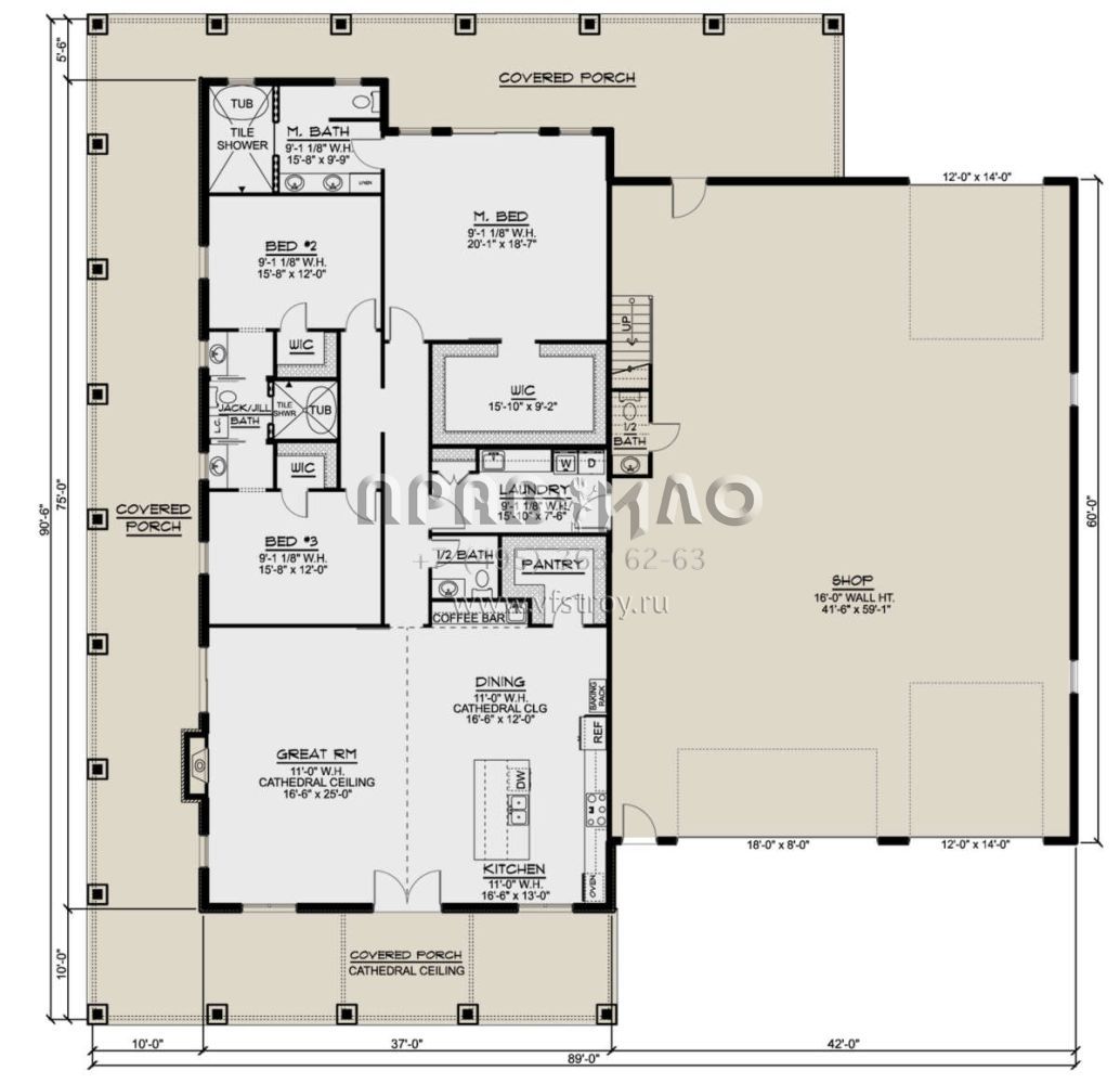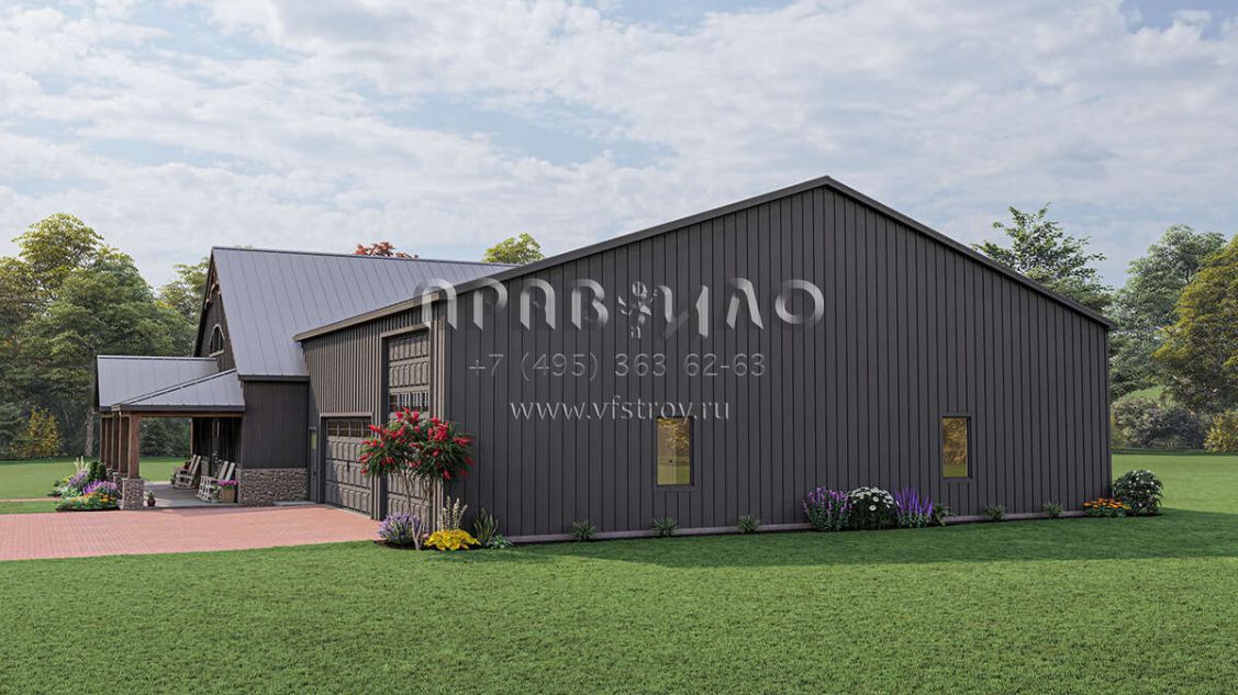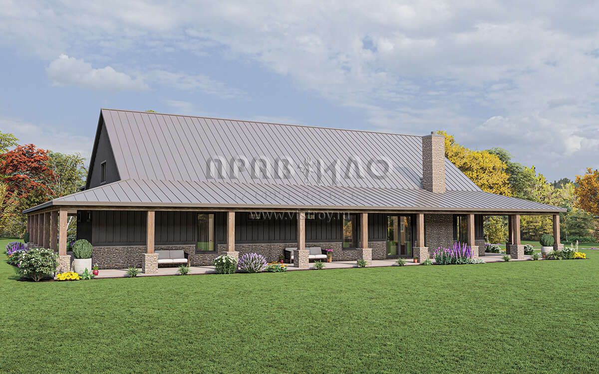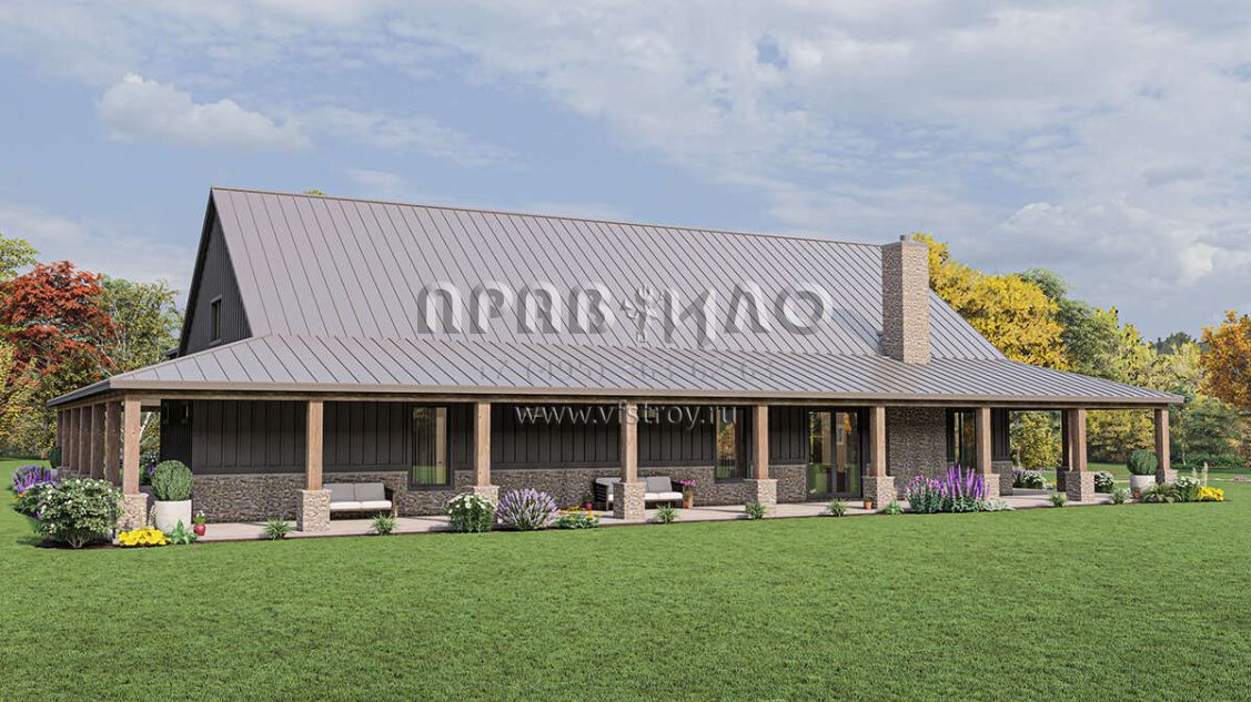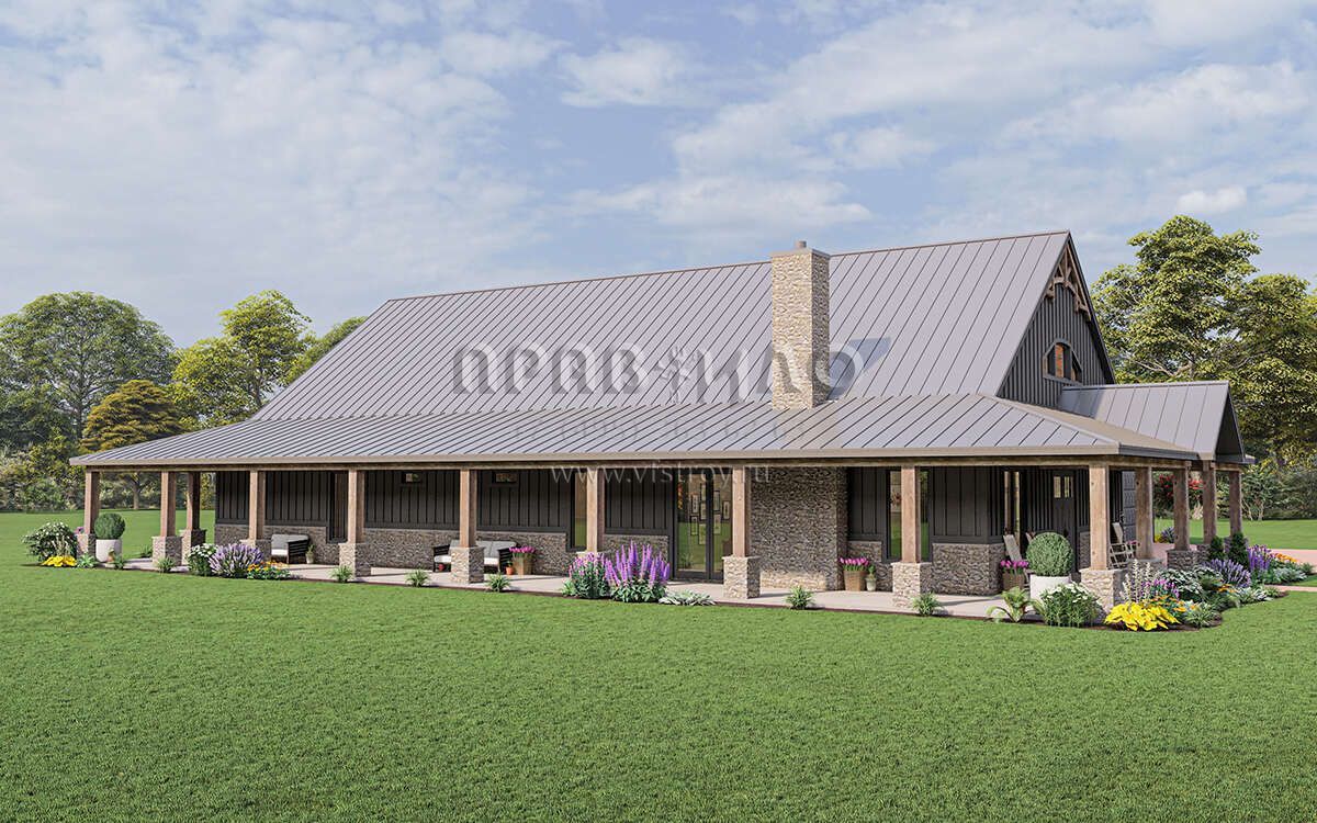 Проект одноэтажного дома с гаражом на три и более машин в стиле БарнХаус S5-250 (5032-00172)