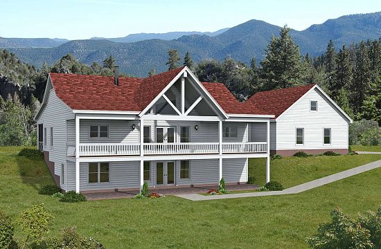 Проект двухэтажного дома с гаражом на две машины в стиле Ранчо S5-250 (7922-00005)