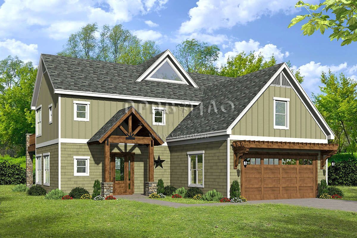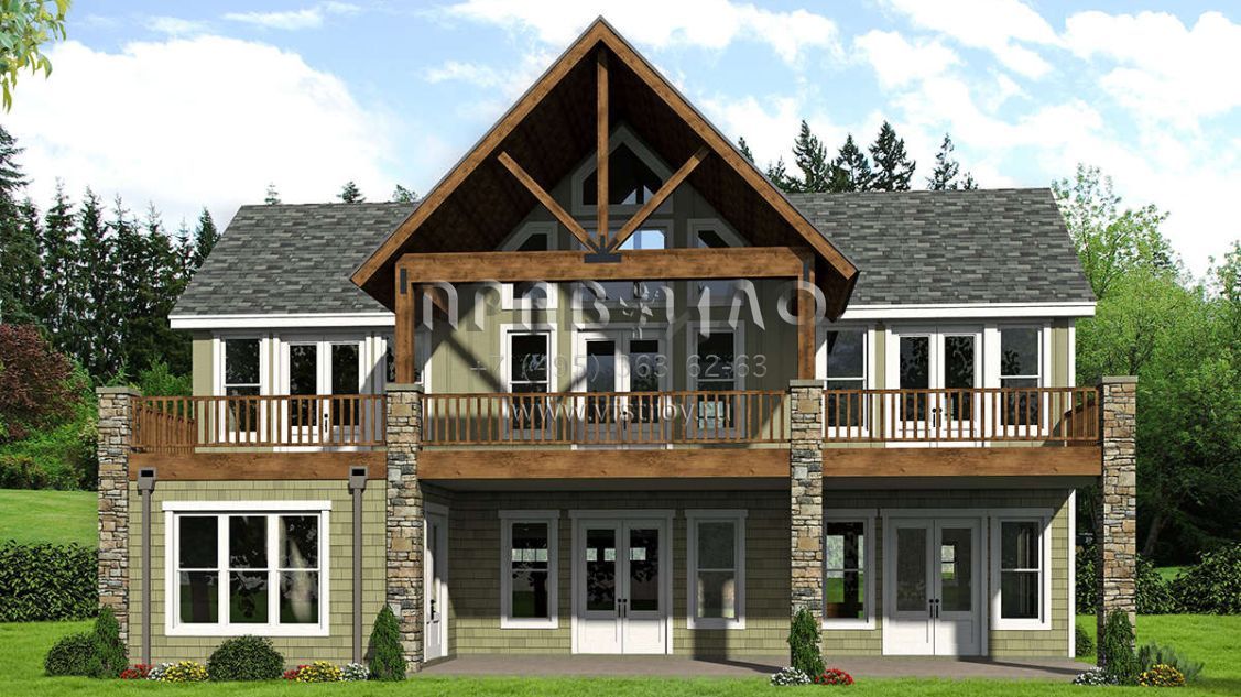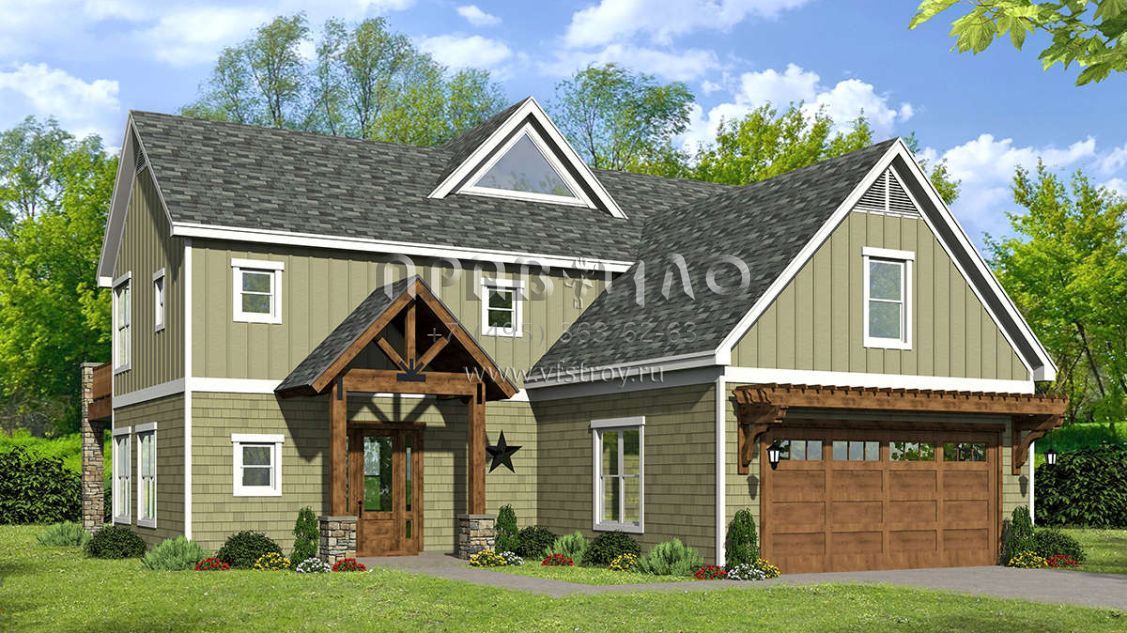 Проект двухэтажного дома с гаражом на две машины в стиле Шале S5-250 (940-00124)