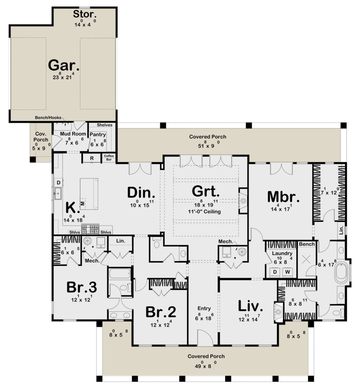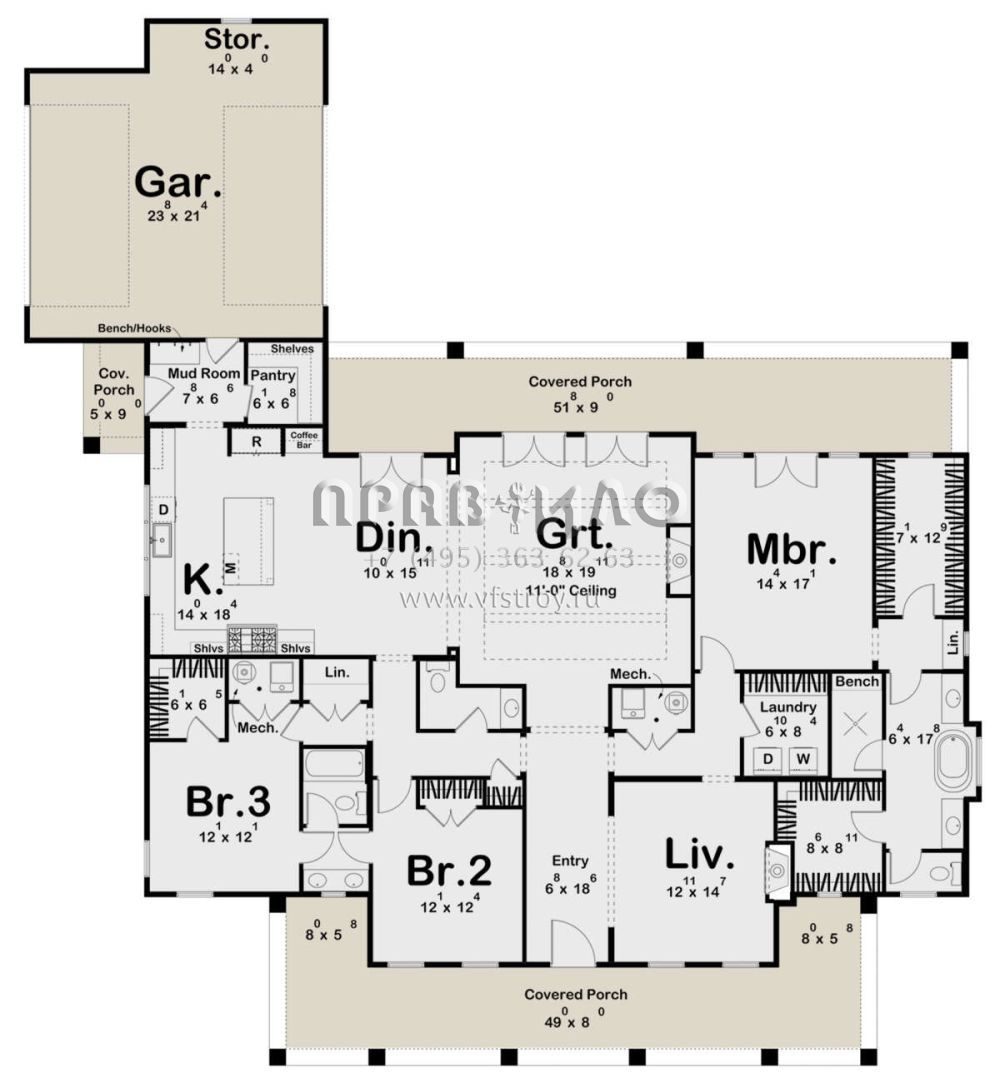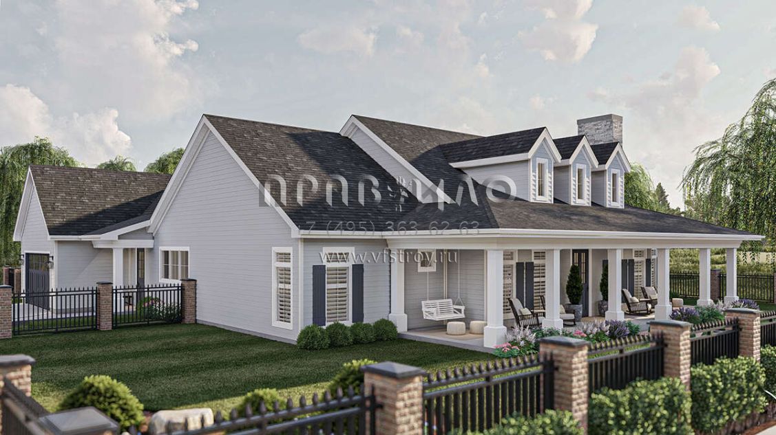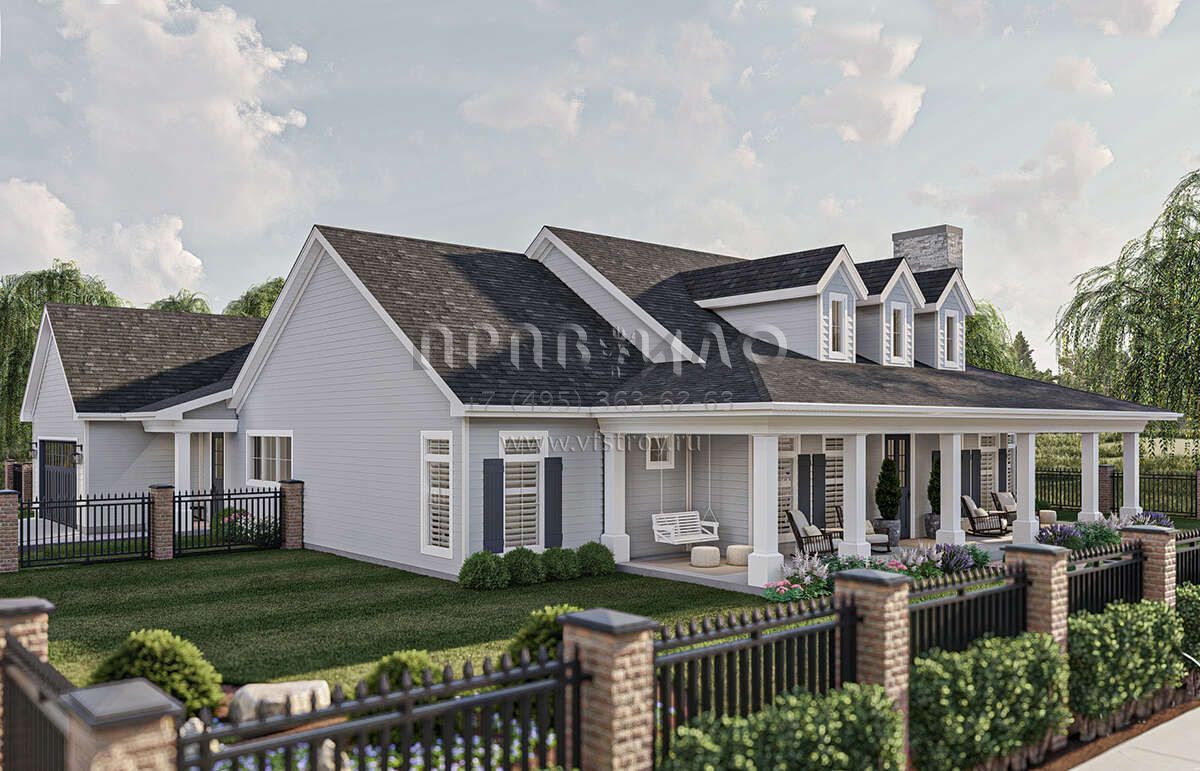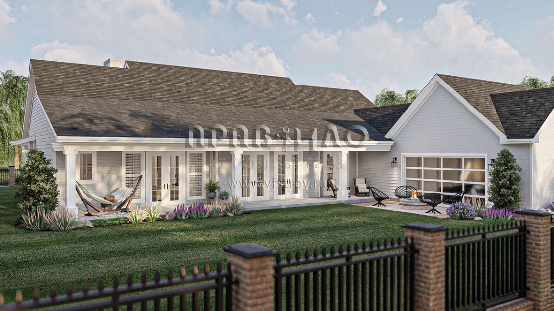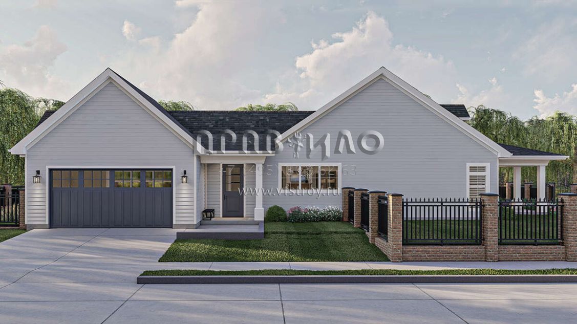 Проект одноэтажного дома с гаражом на две машины в стиле Ранчо S5-250 (963-00830)
