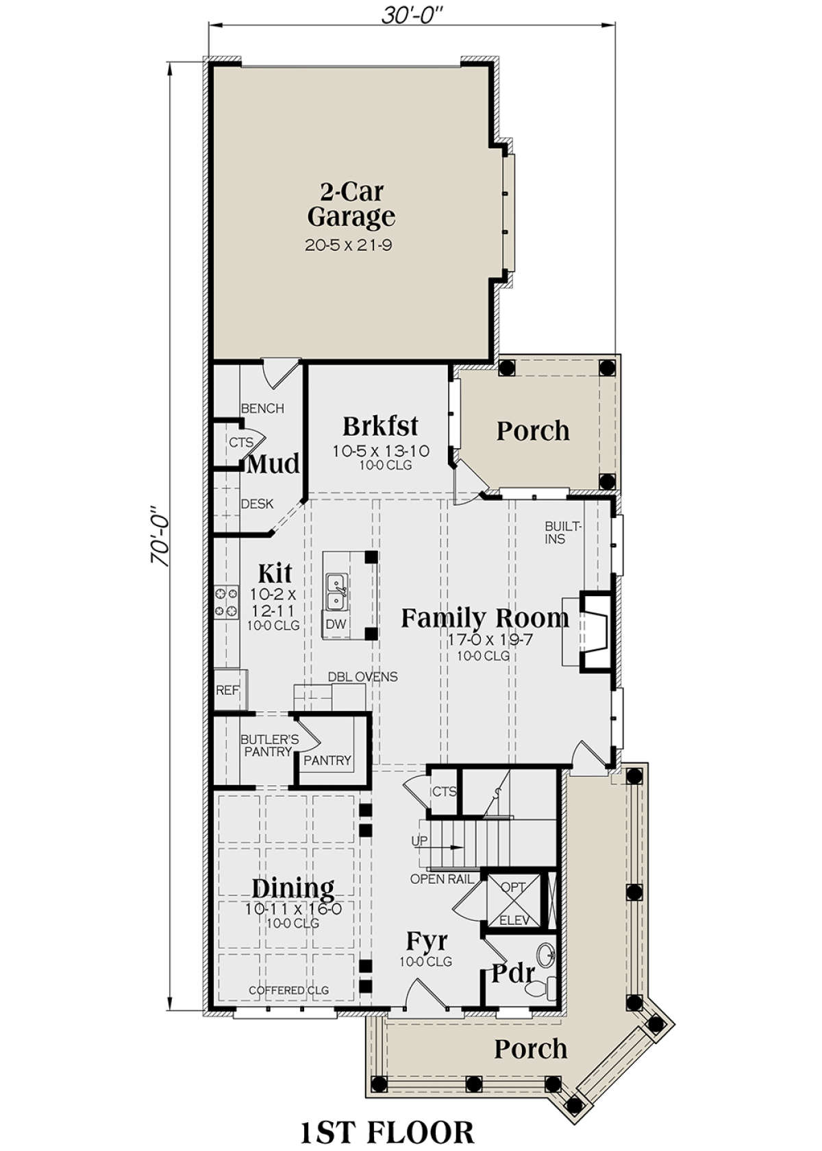 Проект двухэтажного дома с гаражом на две машины в стиле Ранчо S5-251 (009-00245)