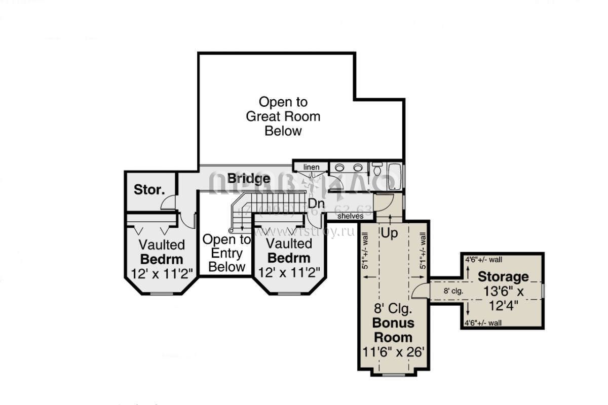Поскольку этот проект разрабатывался иностранными архитекторами, для строительства дома требуется переработка проекта под действующие в России нормы. Данные визуализации проекта представлены для ознакомления с концепцией проекта. Проект разработан американским архитектурным бюро и представлен America's Best House Plans.