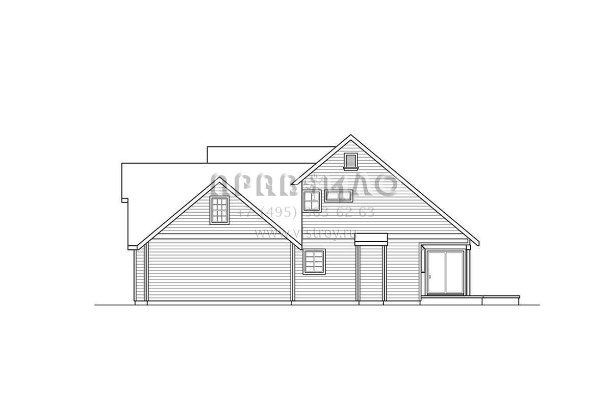 Это проект двухэтажного дома с гаражом на три и более машин жилой площадью 251 кв.м. Длина дома 16.8 м, ширина 25 м, высота 8.5 м. В доме три спальни и два санузла.