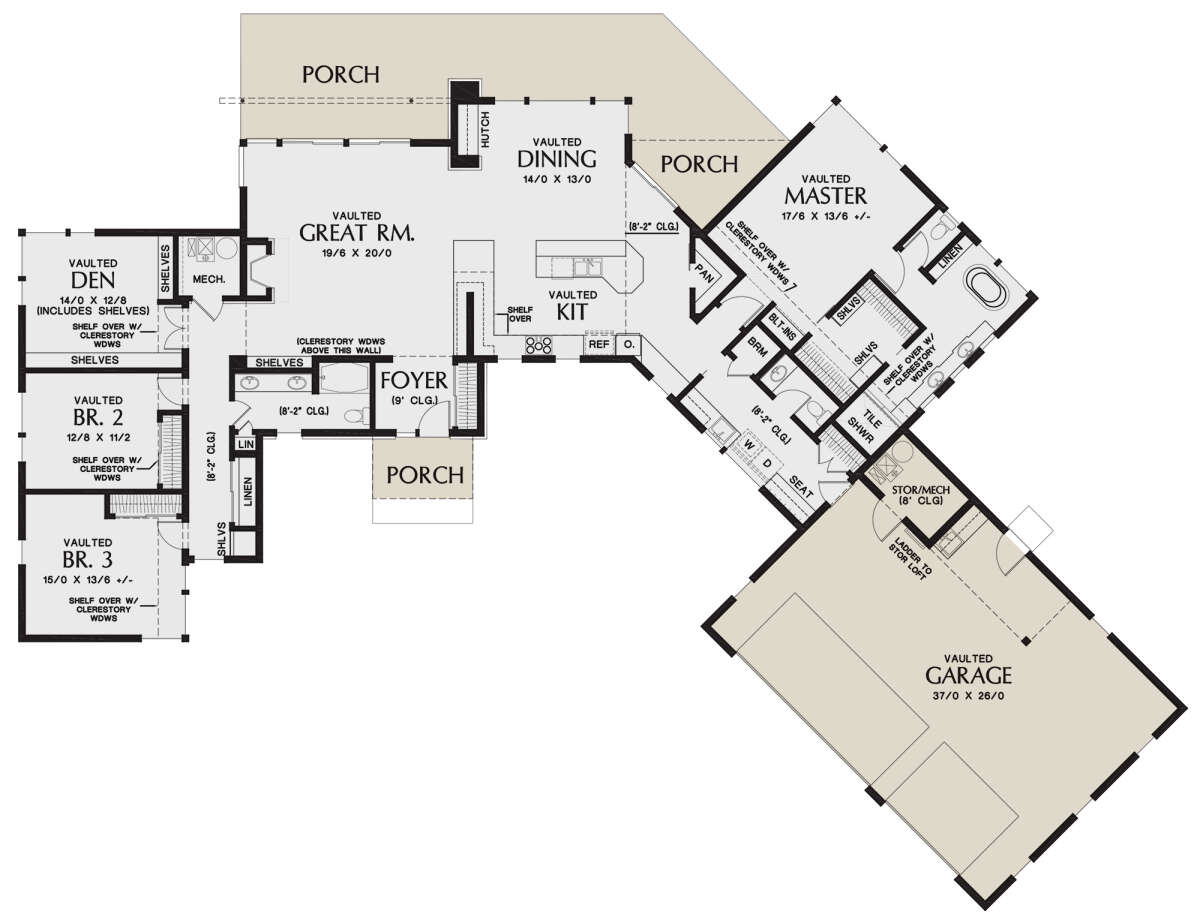 S5-251 (2559-00862) Это иностранный проект, для которого требуется адаптация под нормы, действующие в Российской Федерации. Вы видите проект дома в современном стиле. В этом доме сочетаются черты сельской постройки и аскетичность лофта. Внутри жильцы смогут проводить время с максимальным комфортом. Обратим внимание, что сейчас на планировках все размеры представлены в футах. Для перевода в метры вам необходимо значение в футах умножить на 0,3048.