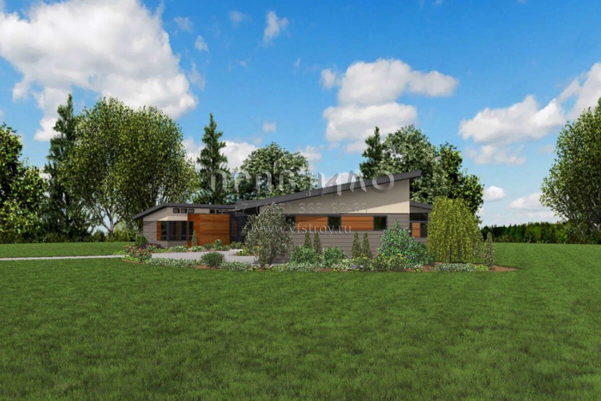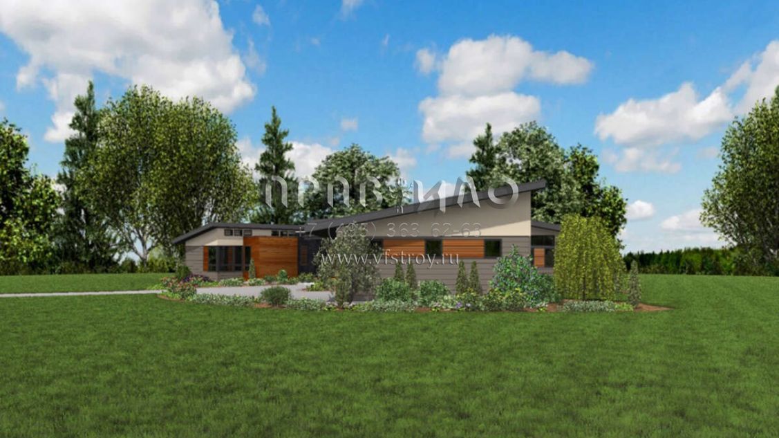 Большая площадь участка позволяет выбрать одноэтажный проект дома, особенно если в семье есть пожилые люди, инвалиды или маленькие дети.