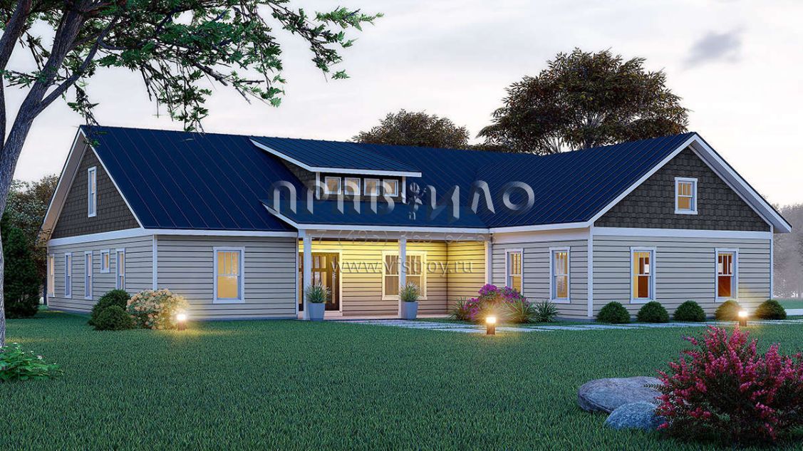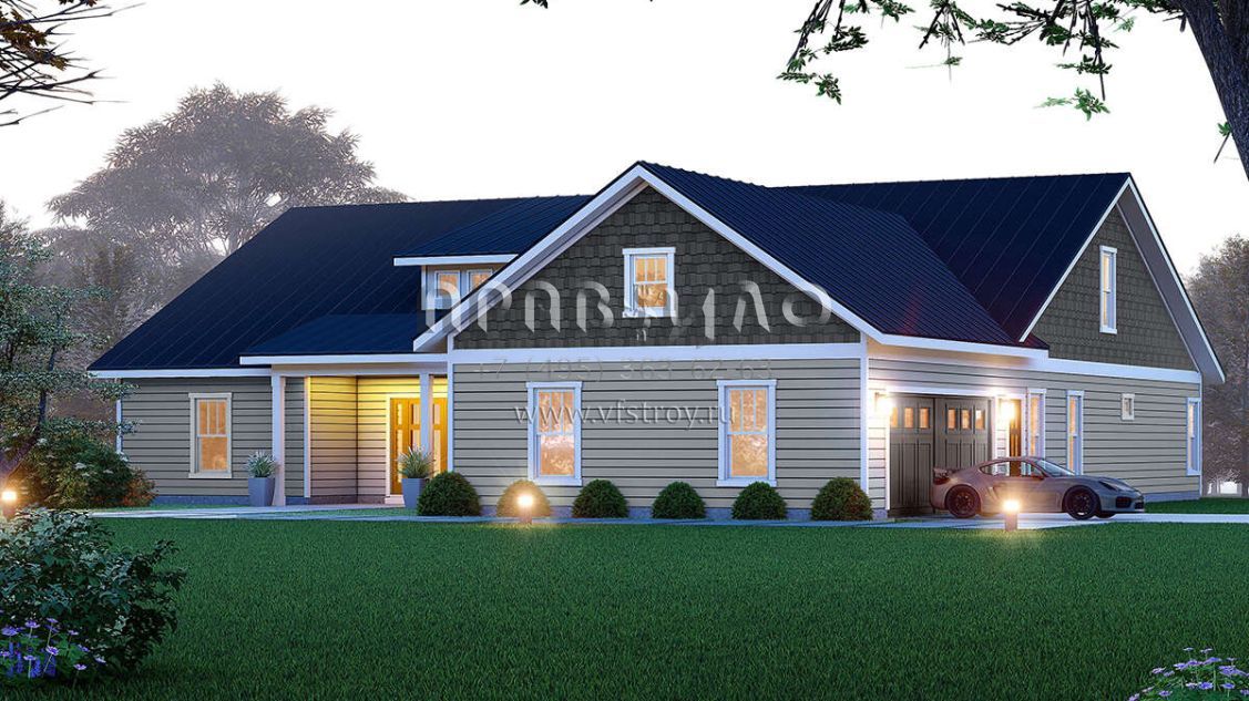Проект одноэтажного дома с гаражом на две машины в стиле Ранчо S5-251 (940-00882)