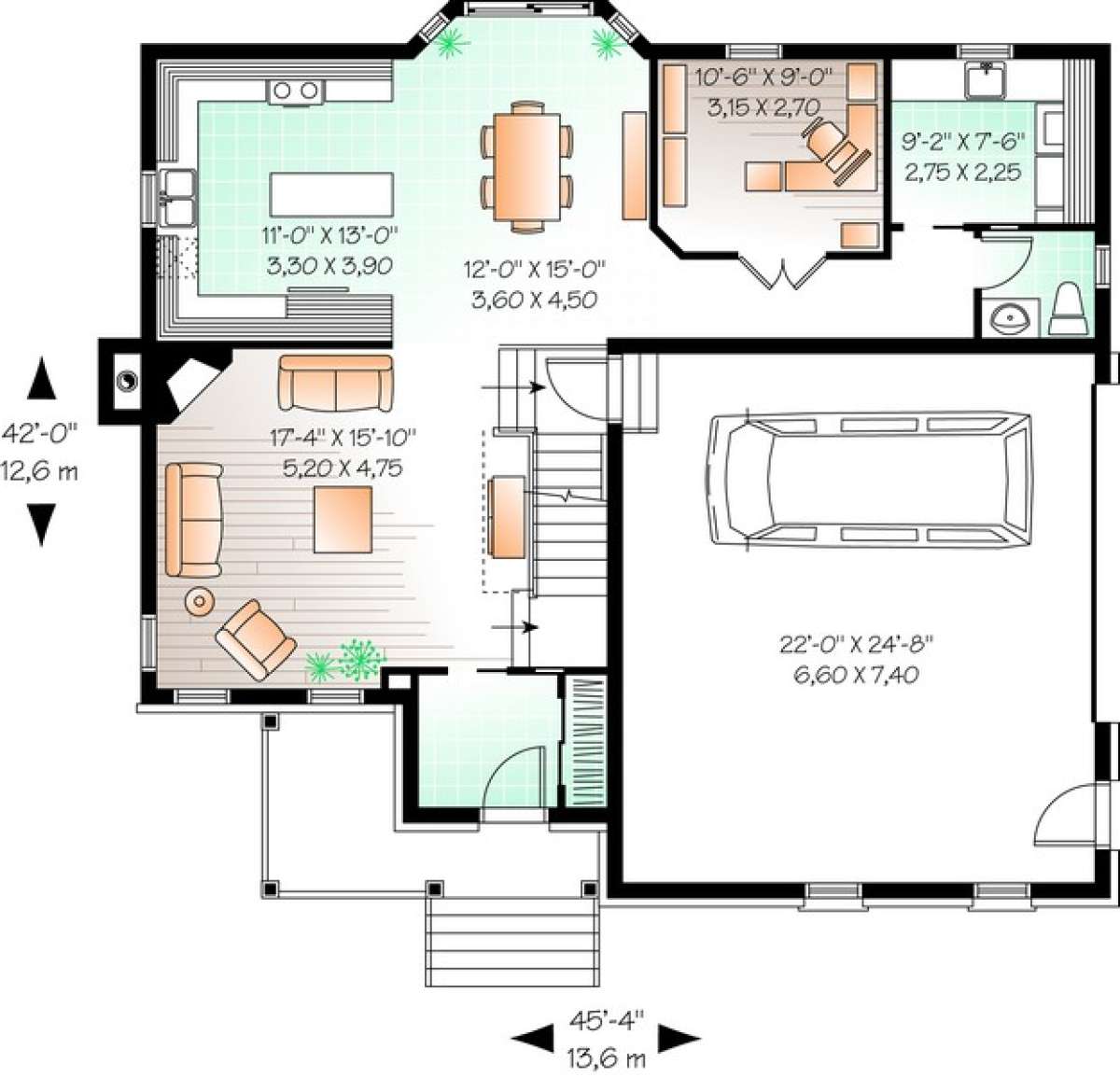 Проект двухэтажного дома с гаражом на две машины в стиле Ранчо S5-252 (034-00989)