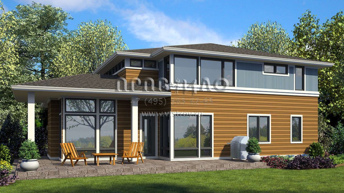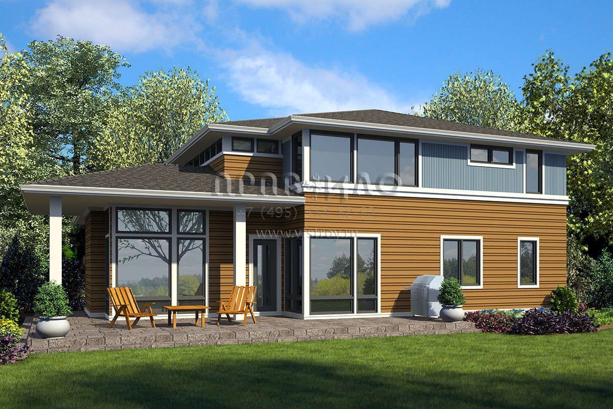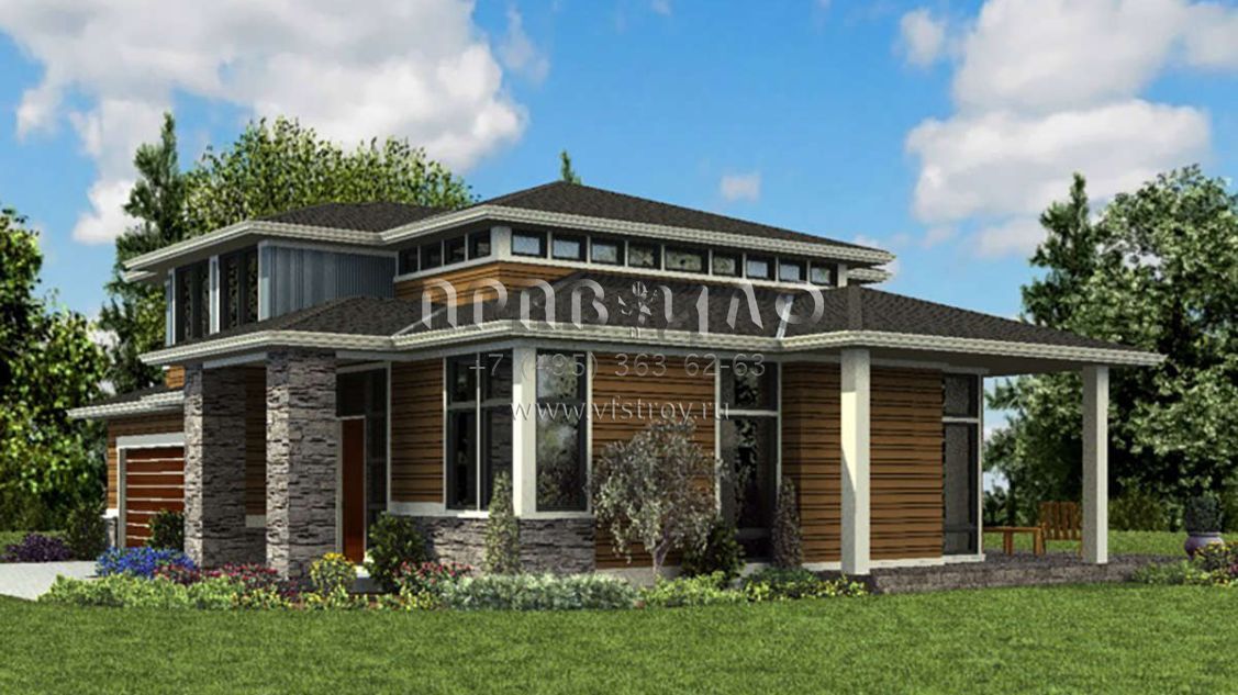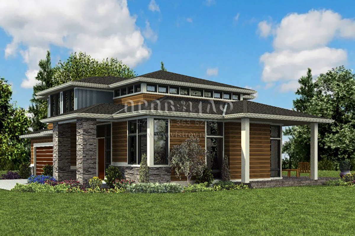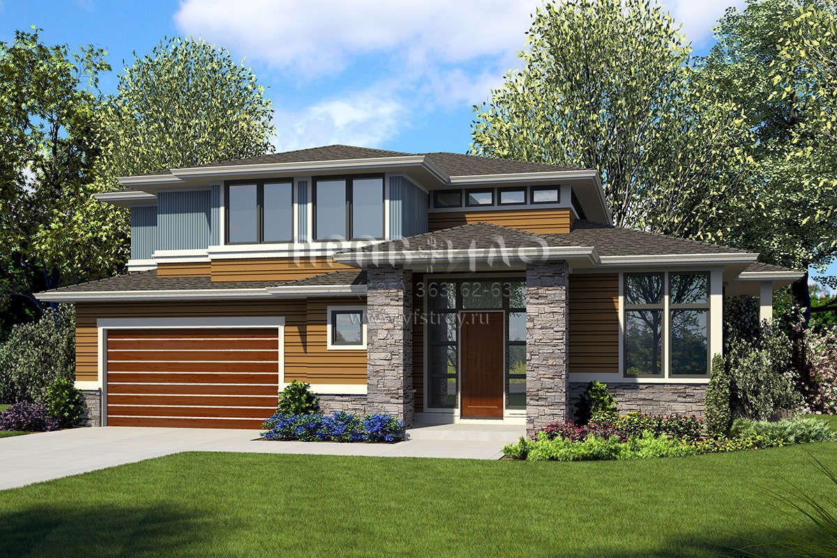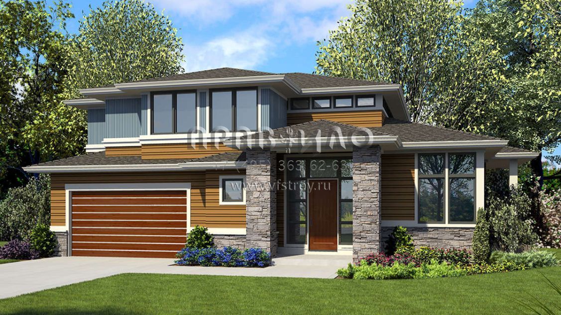 Проект двухэтажного дома с гаражом на две машины в стиле Райт S5-252 (2559-00811)