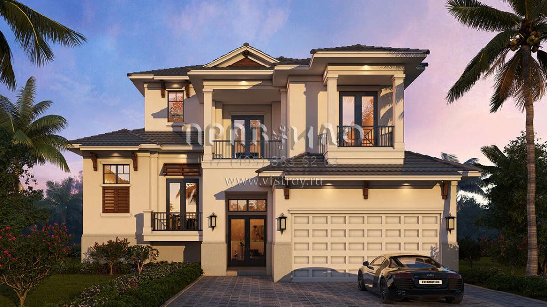 Проект двухэтажного дома с гаражом на две машины в современном стиле S5-252 (5565-00067)