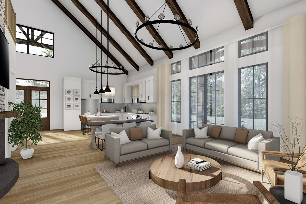 Проект двухэтажного дома с гаражом на три и более машин в стиле БарнХаус S5-252 (699-00323)
