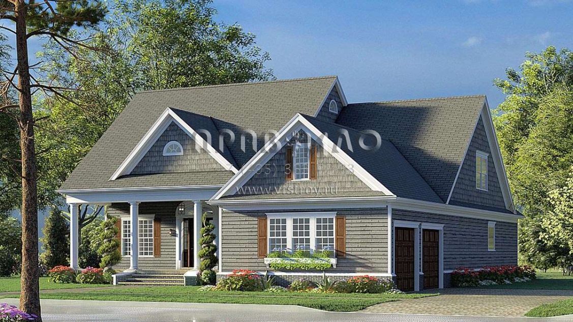 Проект одноэтажного дома с гаражом на две машины в стиле Ранчо S5-252 (8318-00197)