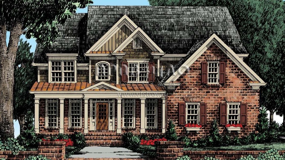 Проект двухэтажного дома с гаражом на две машины в стиле Ранчо S5-252 (8594-00171)