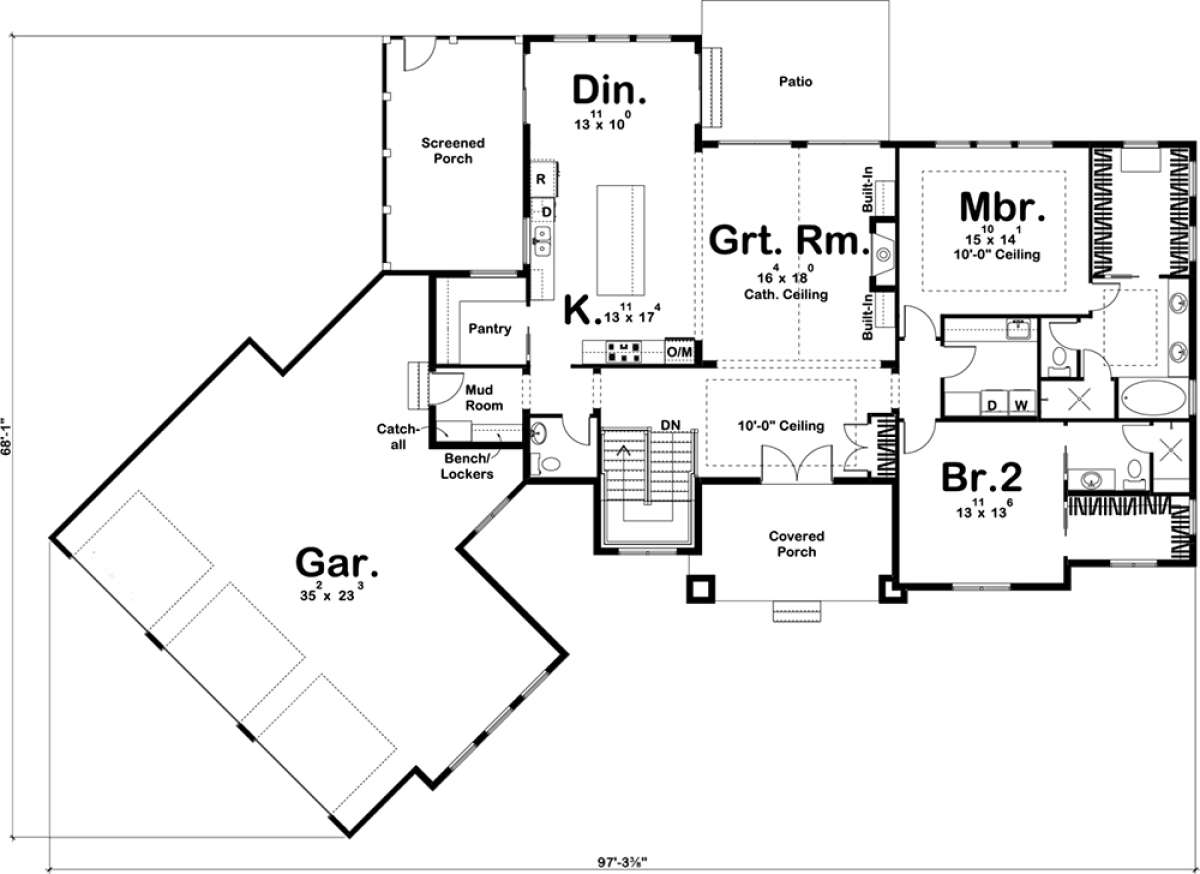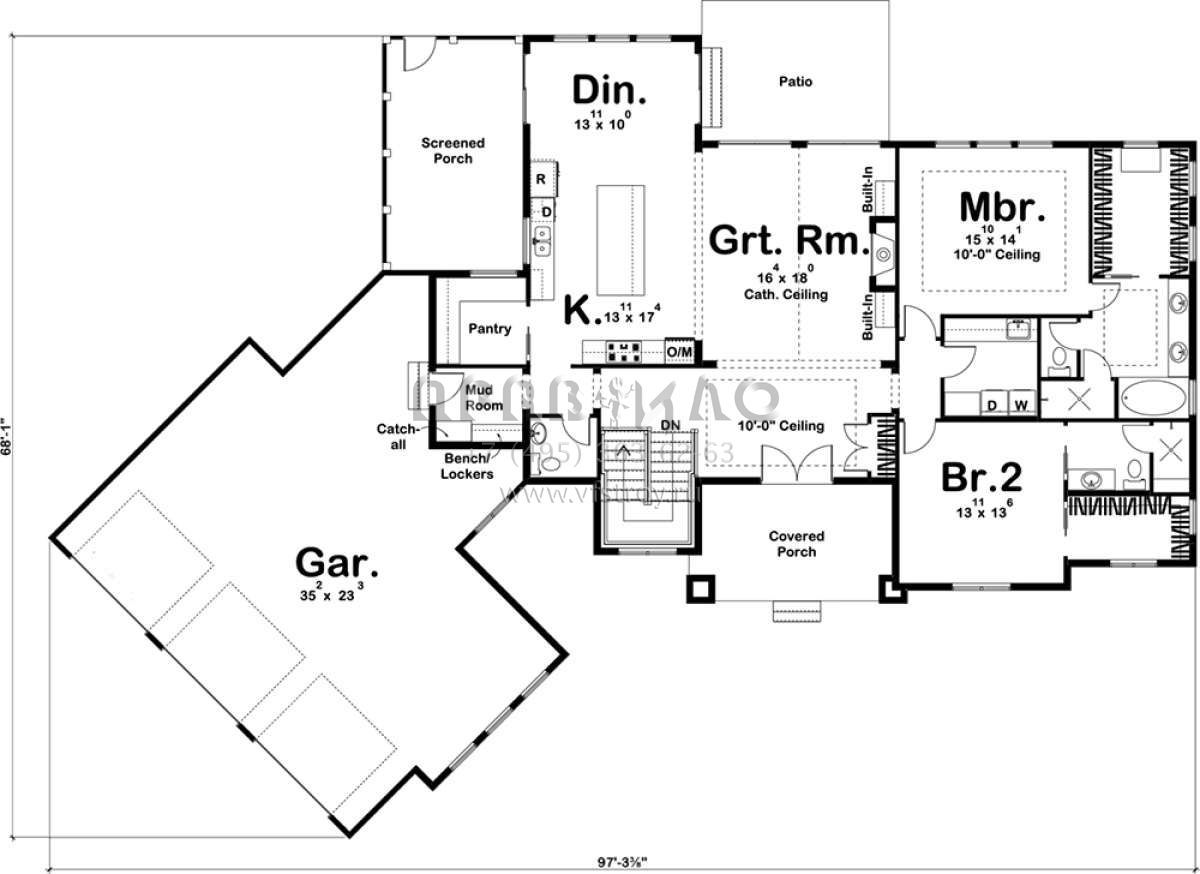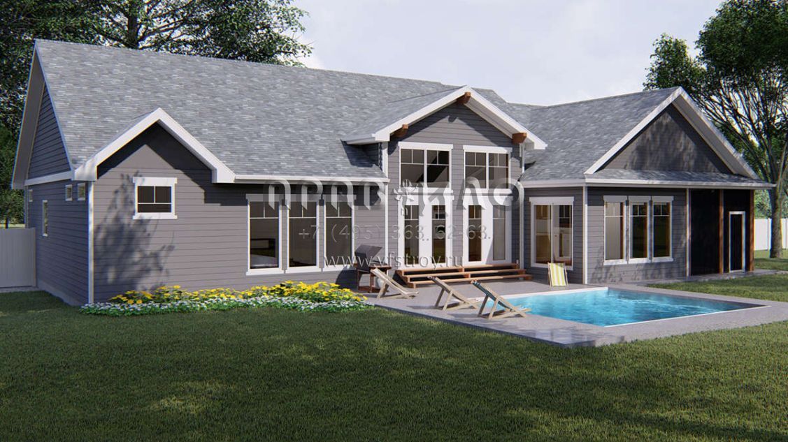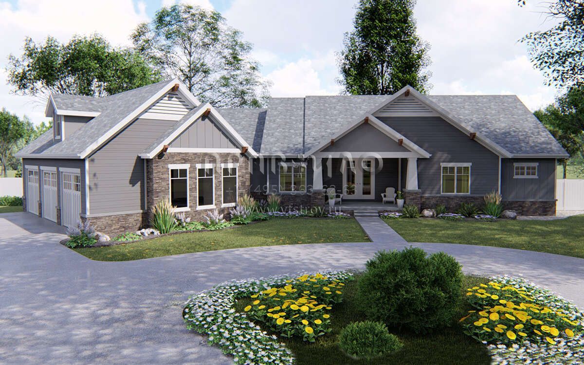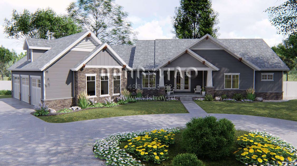 Проект одноэтажного дома с гаражом на три и более машин в американском стиле S5-252 (963-00303)