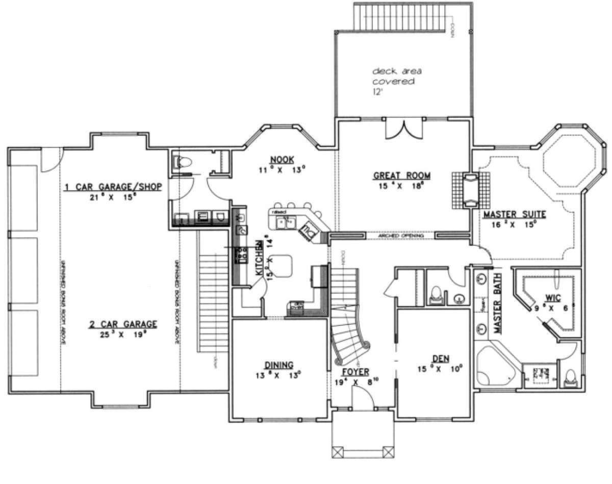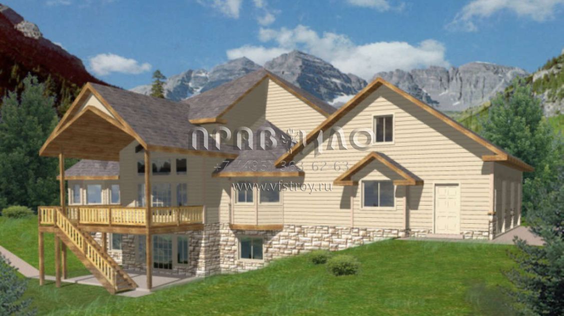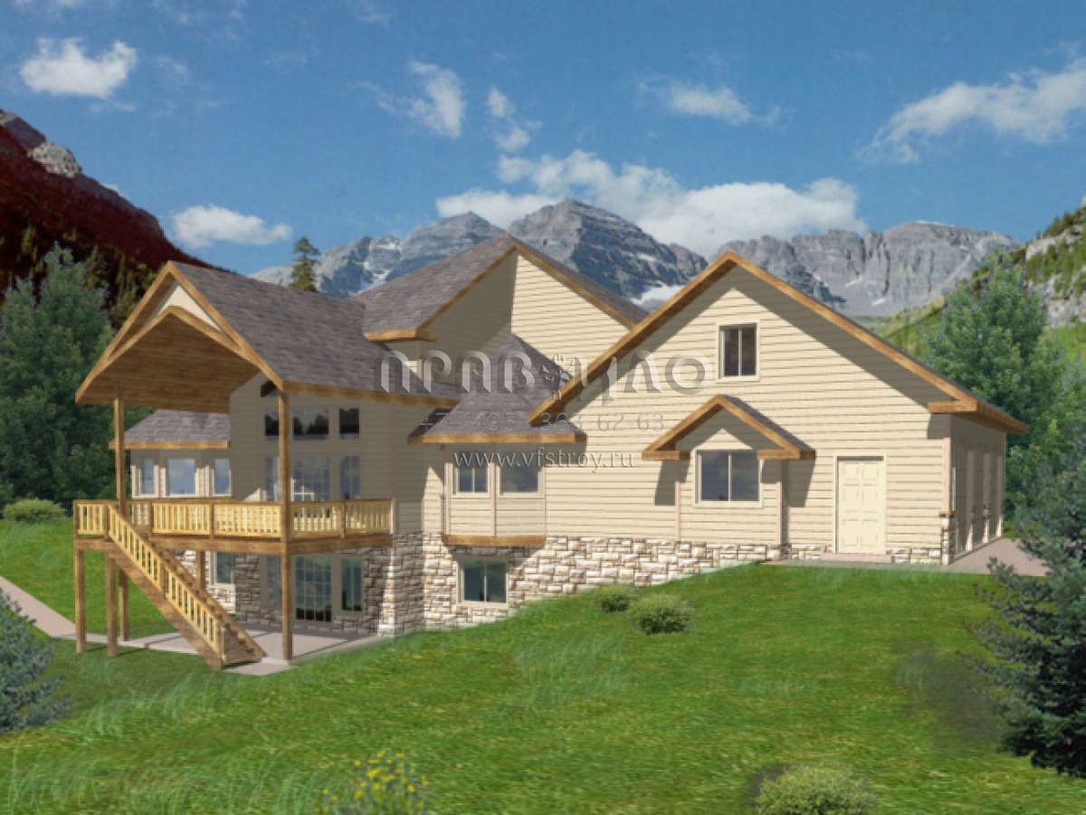 Проект двухэтажного дома с гаражом на три и более машин в стиле Ранчо S5-253 (039-00369)
