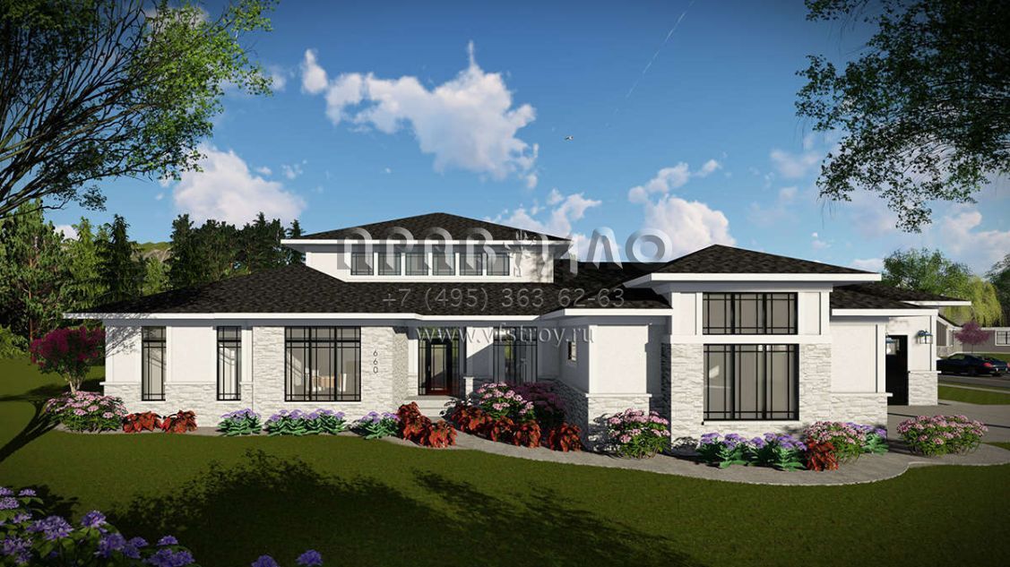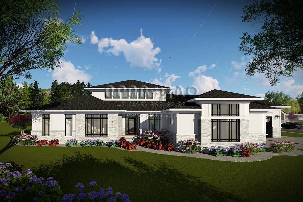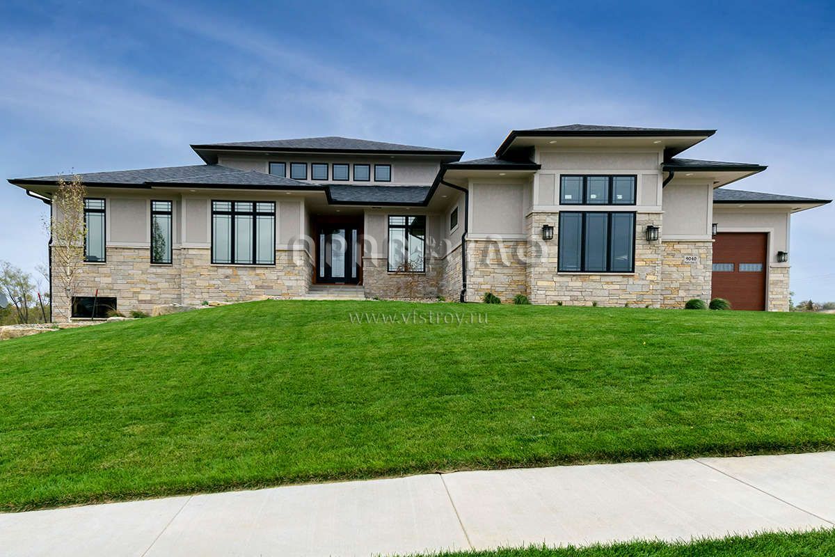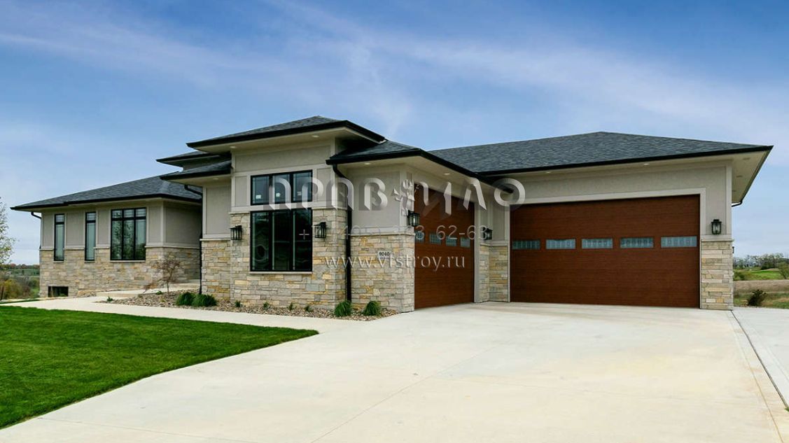 Проект одноэтажного дома с гаражом на три и более машин в стиле Райт S5-253 (1020-00338)