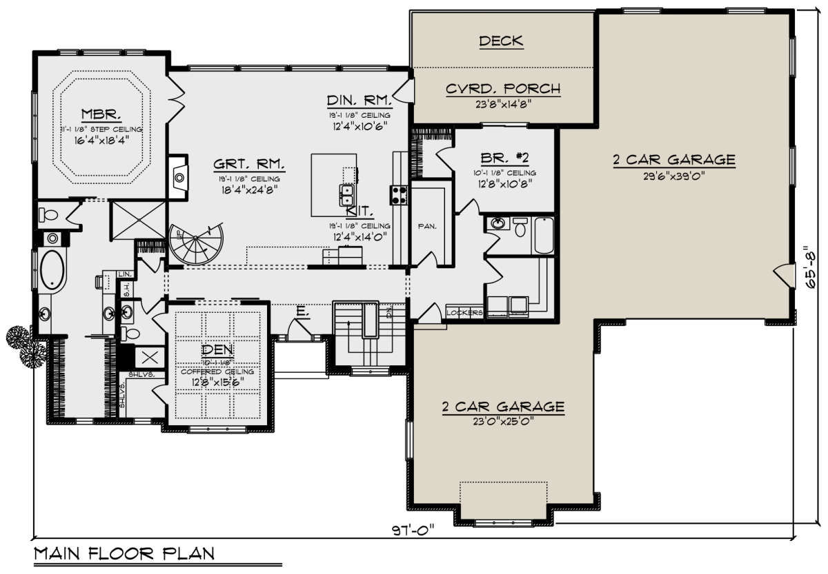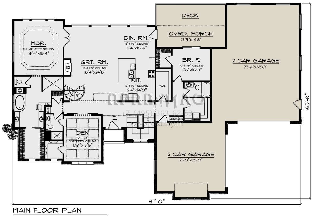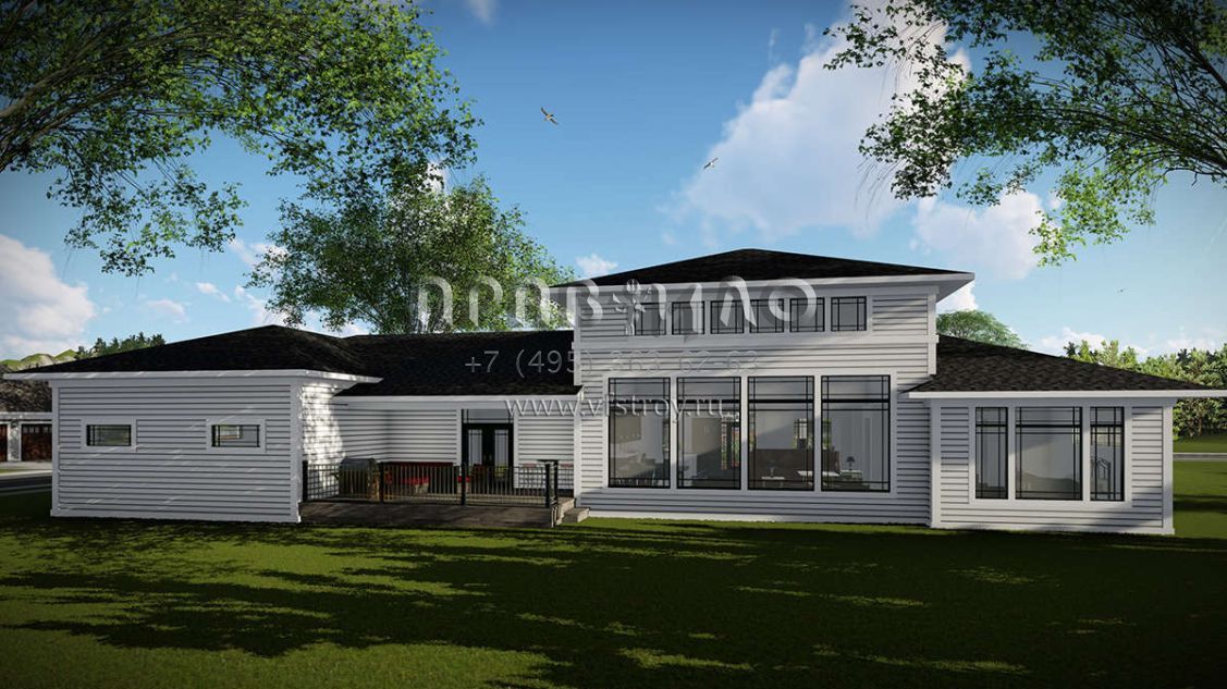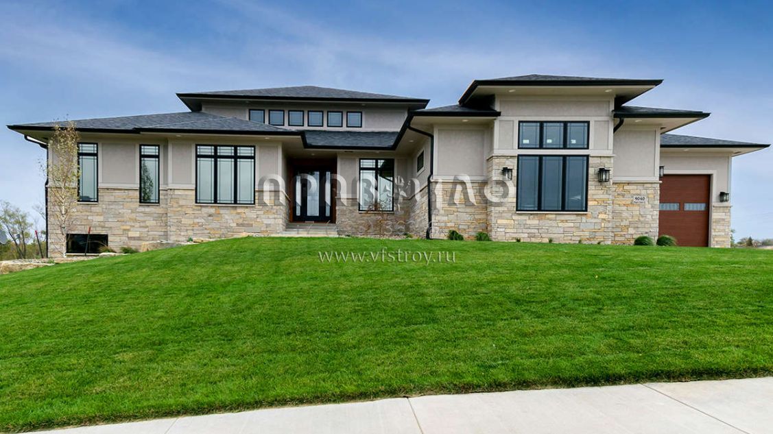 Проект одноэтажного дома с гаражом на три и более машин в стиле Райт S5-253 (1020-00338)