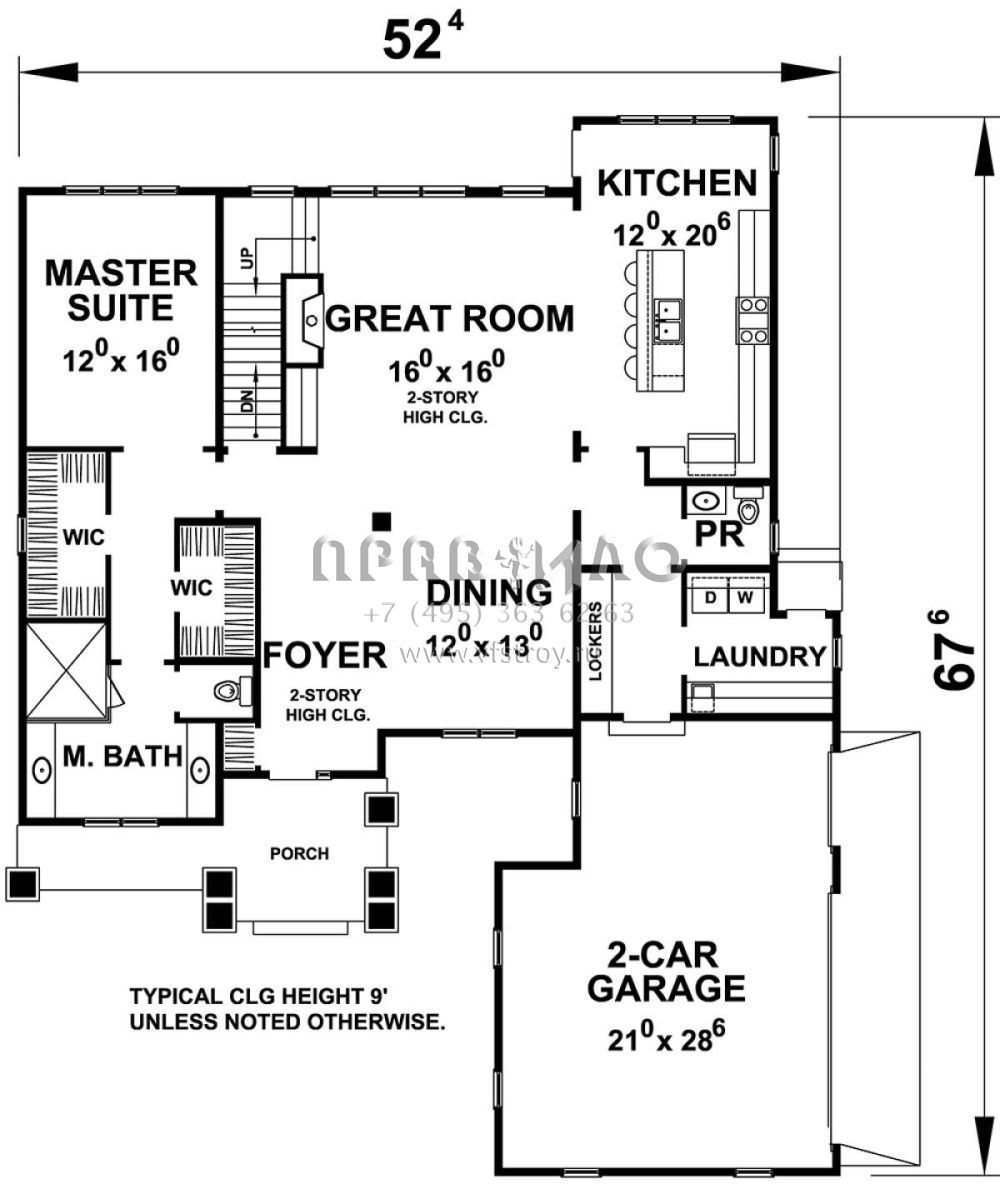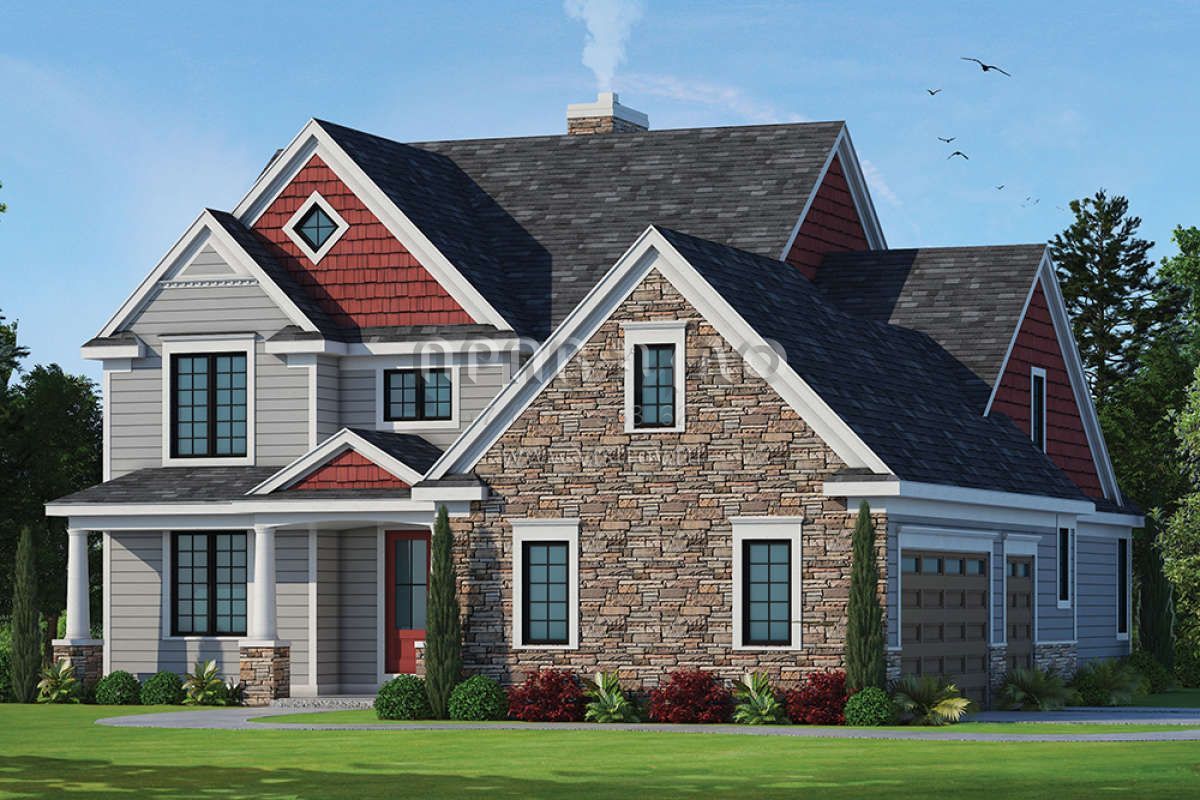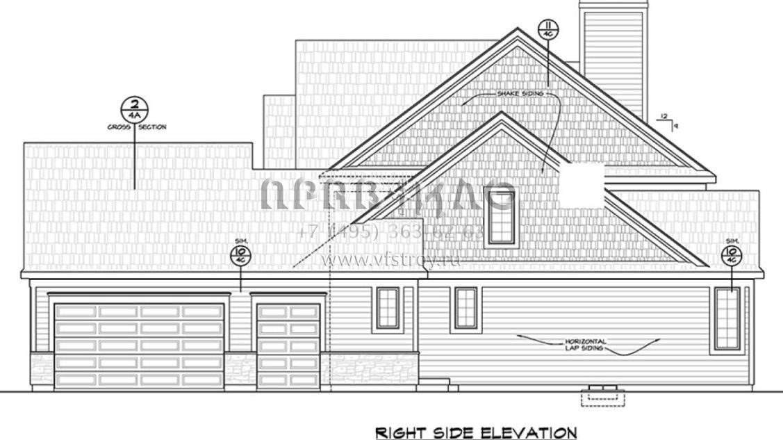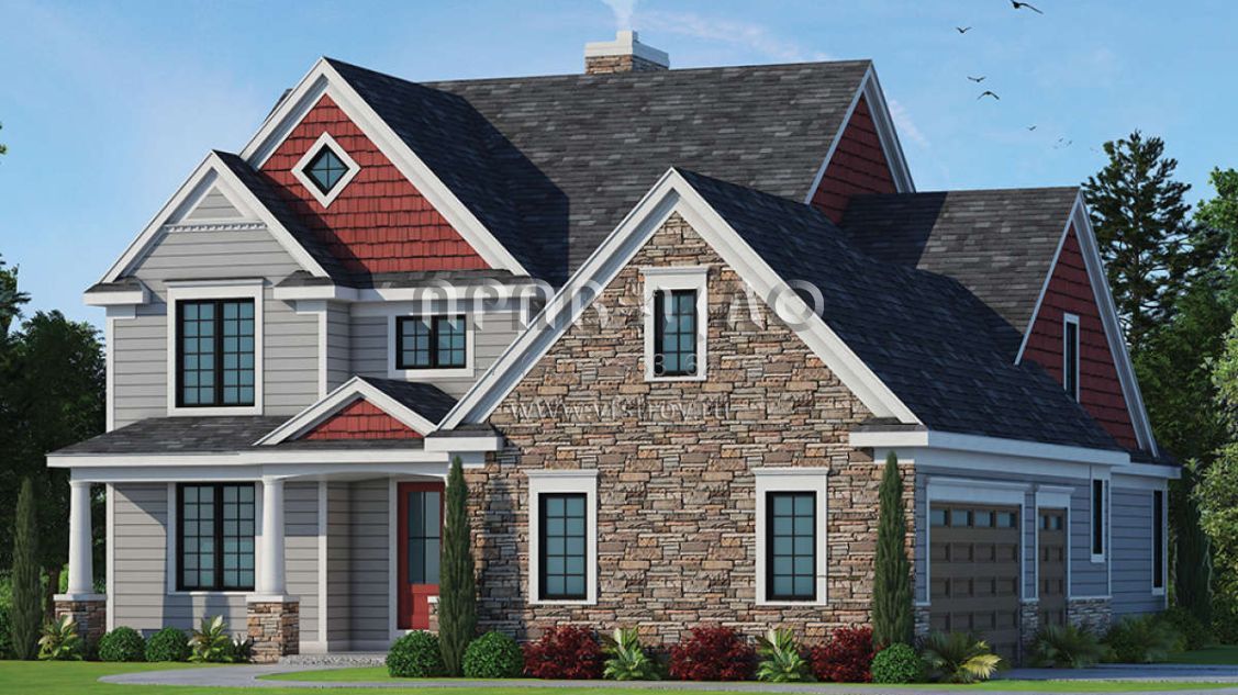 Проект двухэтажного дома с гаражом на две машины в стиле Ранчо S5-253 (402-01467)