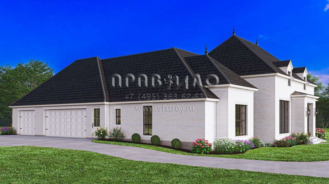 Проект одноэтажного дома с гаражом на три и более машин в стиле Ранчо S5-253 (4534-00108)