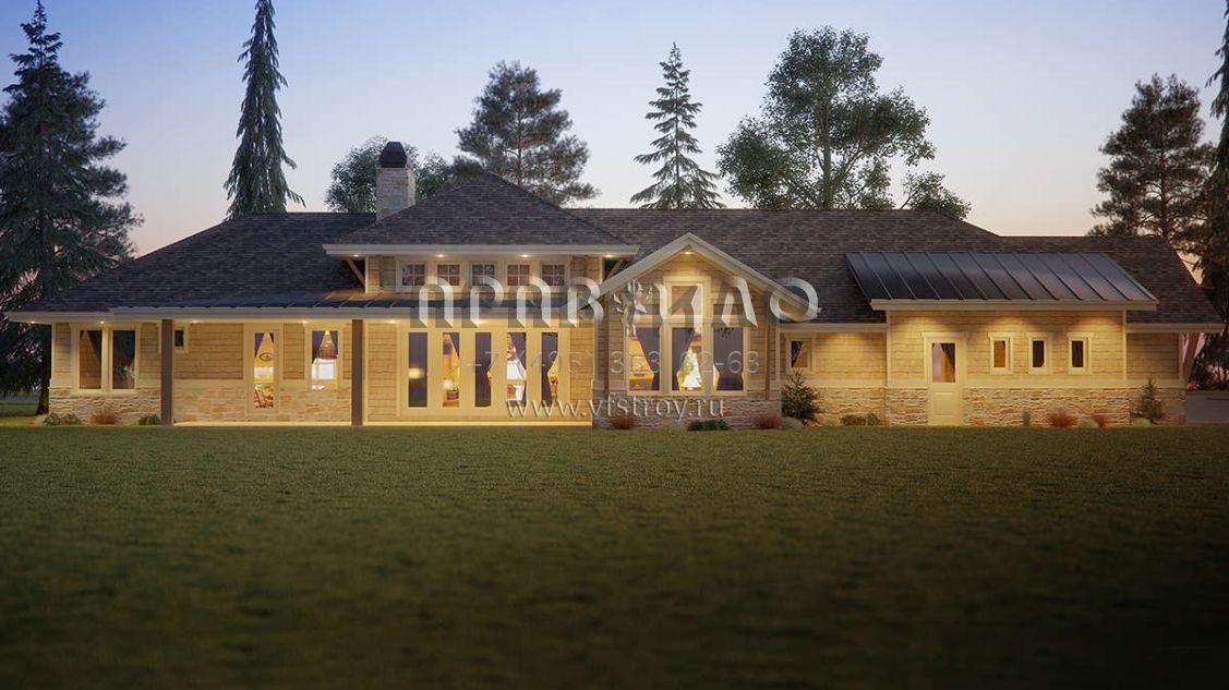 Большая площадь участка позволяет выбрать одноэтажный проект дома, особенно если в семье есть пожилые люди, инвалиды или маленькие дети.