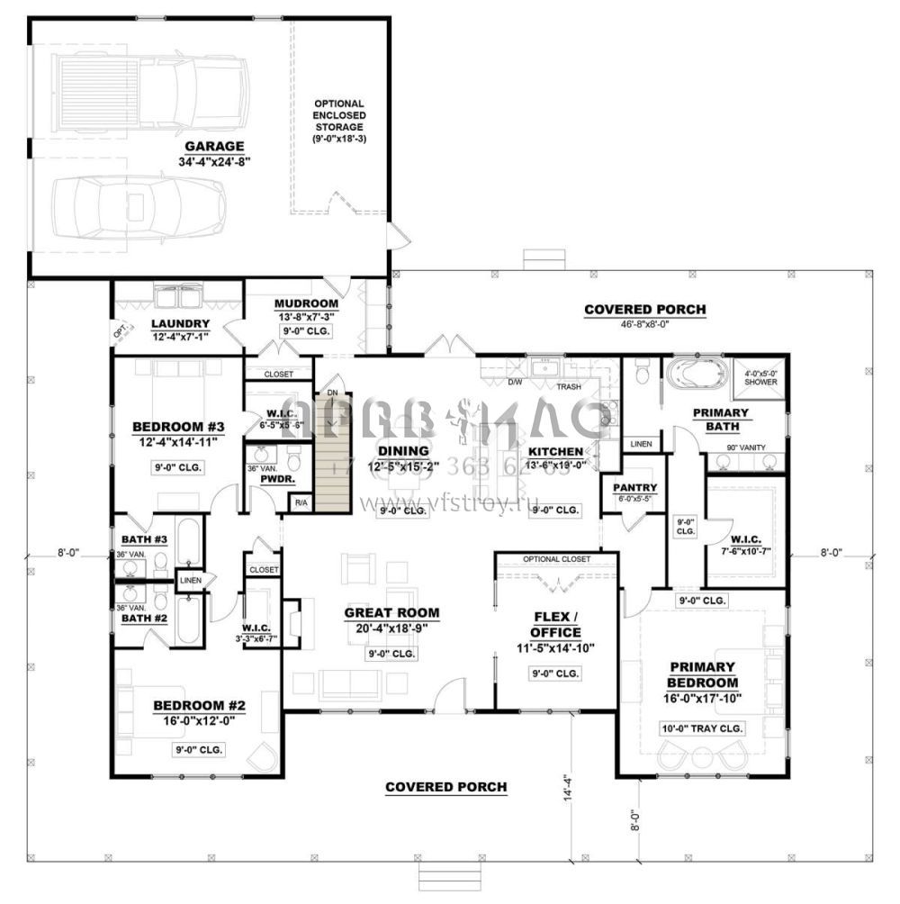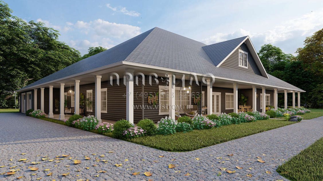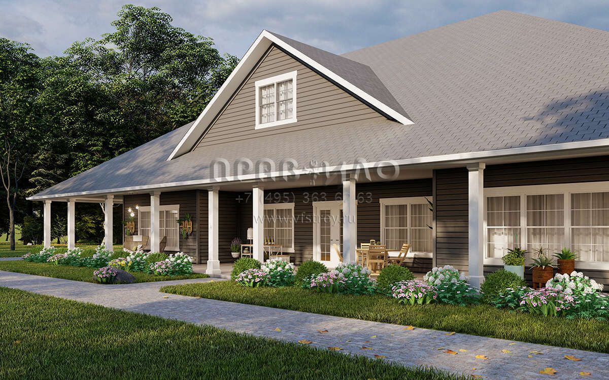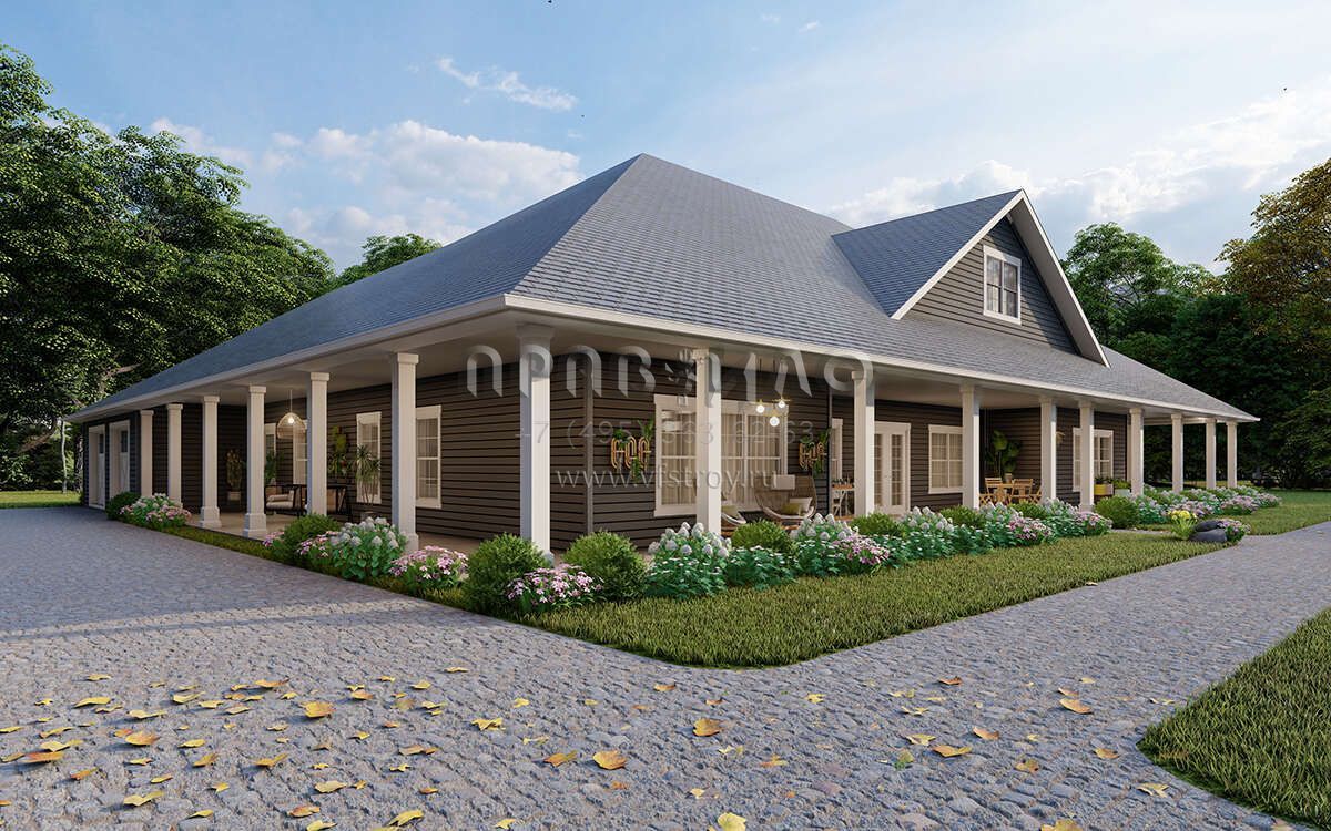 Проект одноэтажного дома с гаражом на две машины в стиле Ранчо S5-253 (7568-00020)