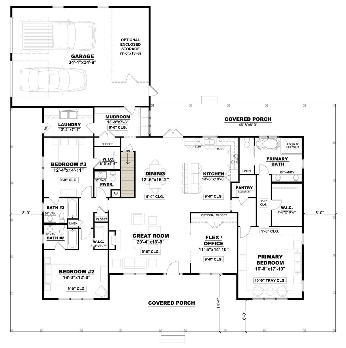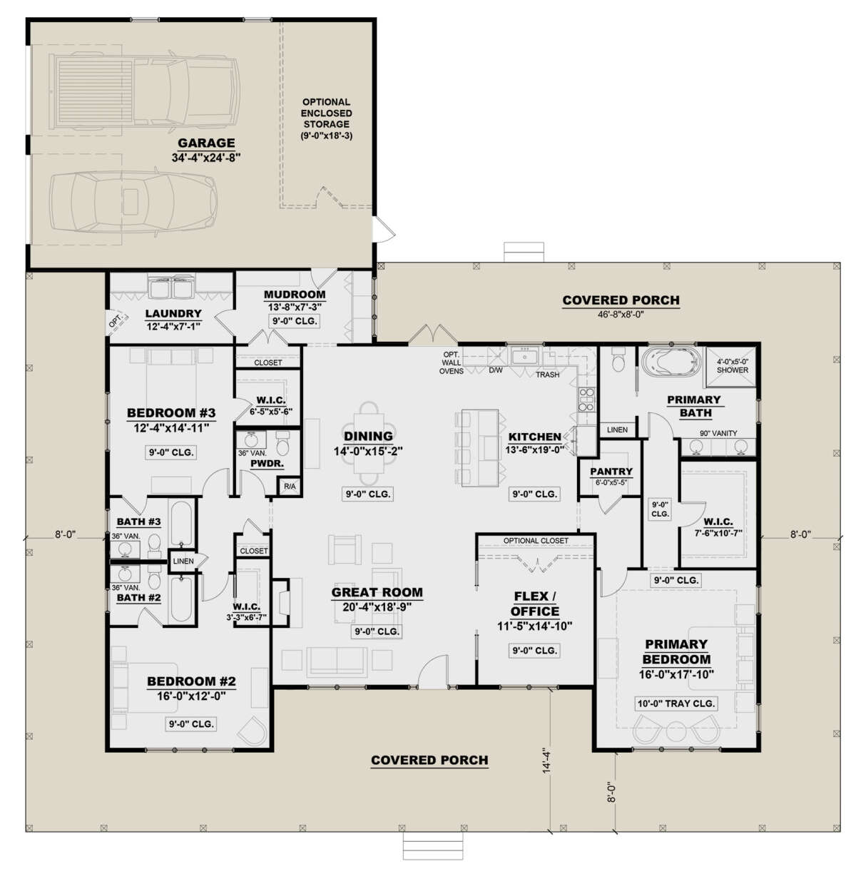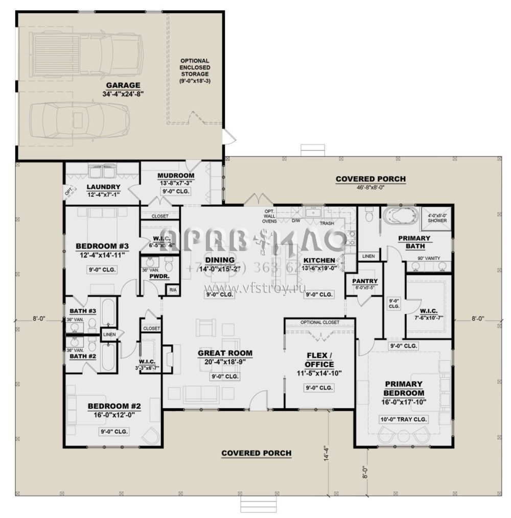 Проект одноэтажного дома с гаражом на две машины в стиле Ранчо S5-253 (7568-00020)