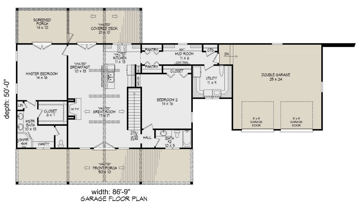 Проект одноэтажного дома с гаражом на две машины в стиле Ранчо S5-253 (940-00564)