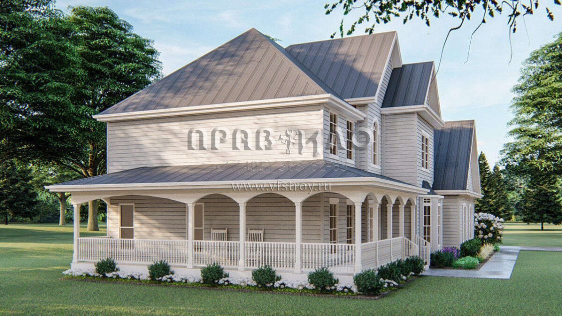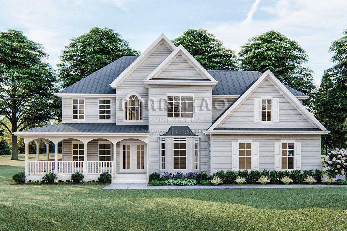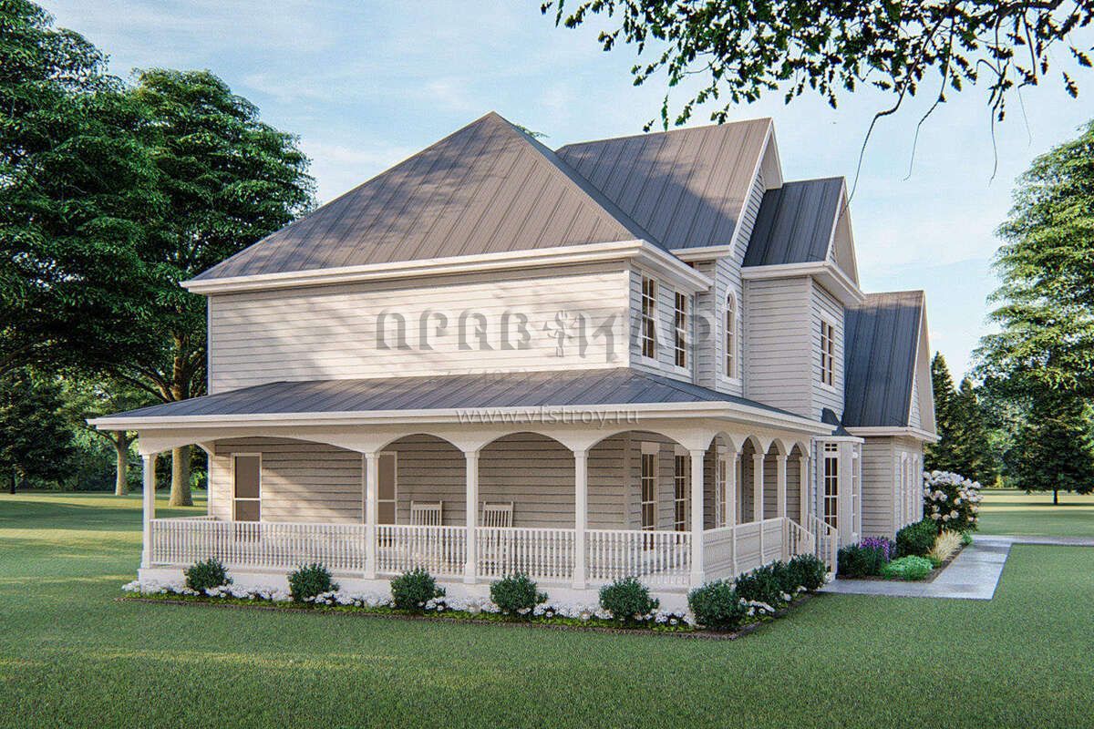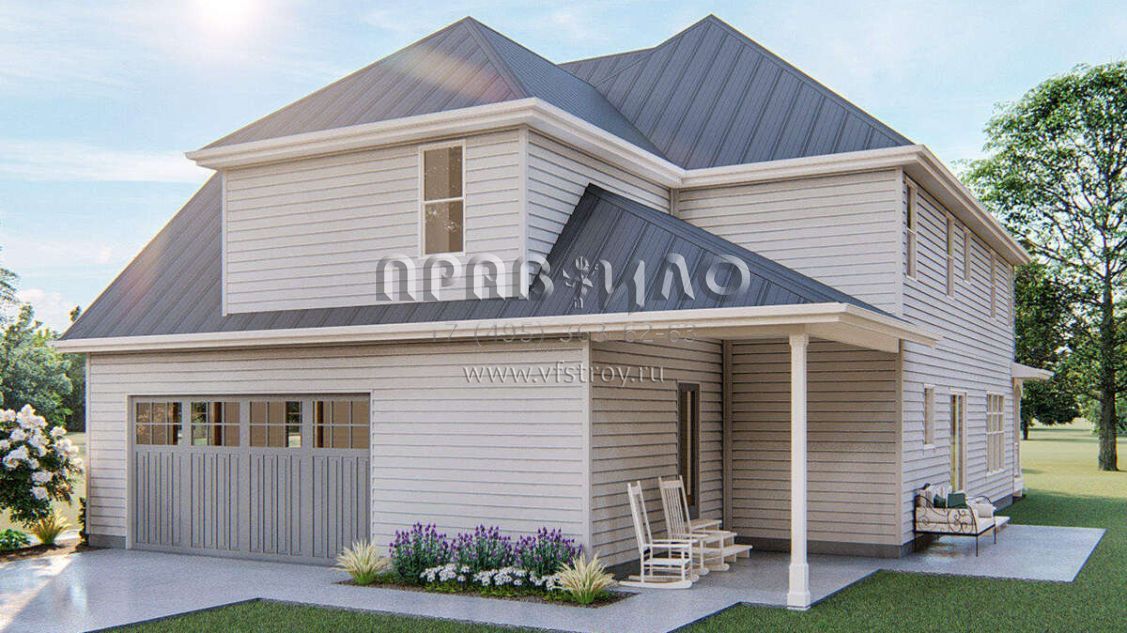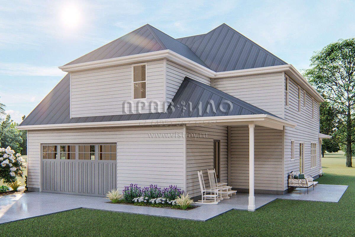 Проект двухэтажного дома с гаражом на две машины в стиле Ранчо S5-253 (963-00255)