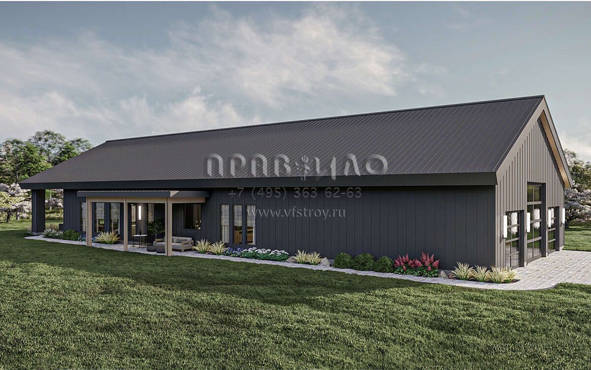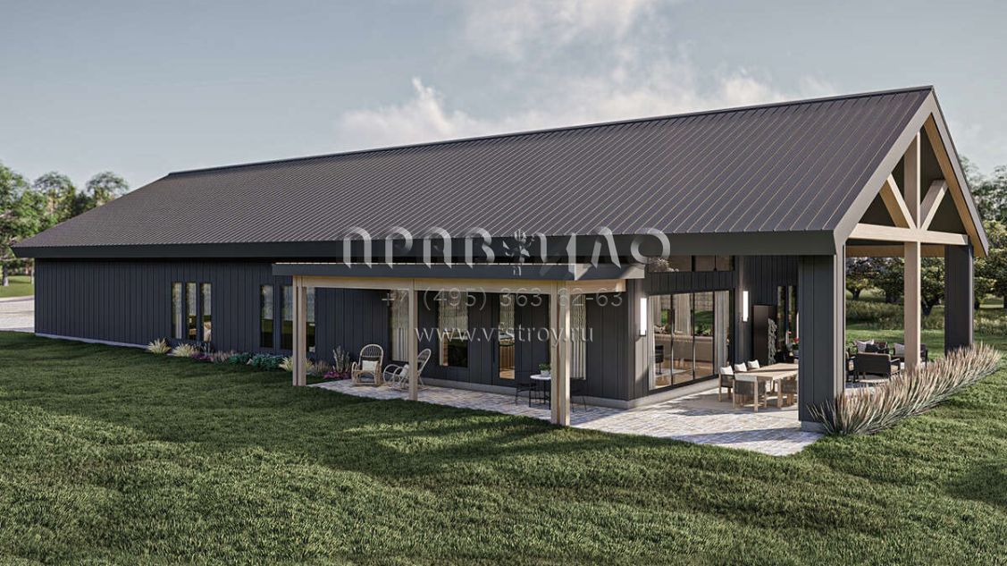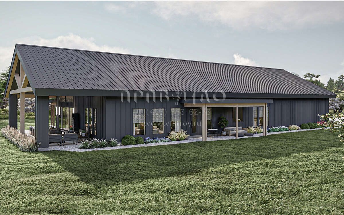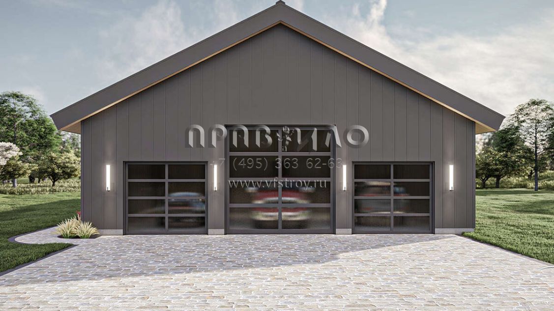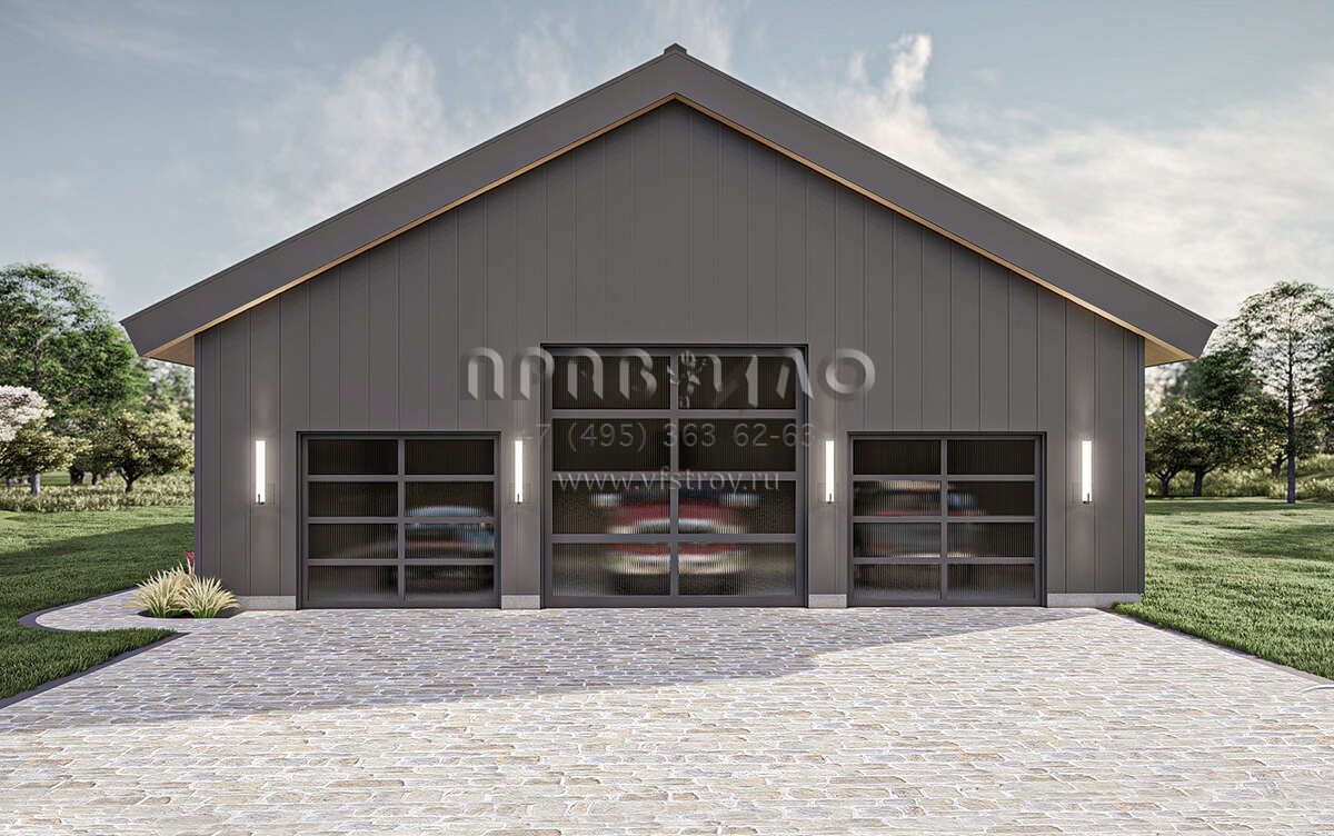 Проект одноэтажного дома с гаражом на три машины в стиле БарнХаус S5-253 (963-00859)