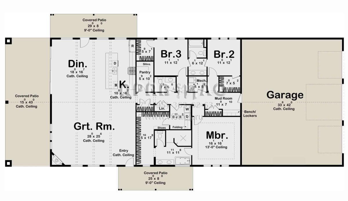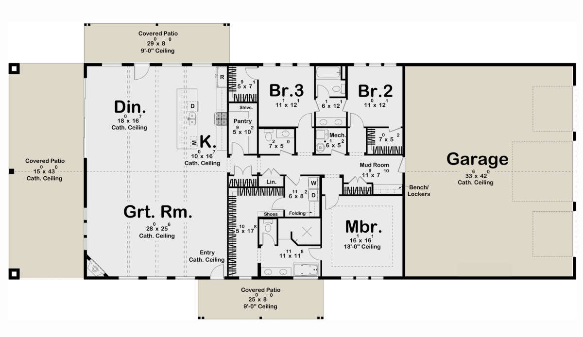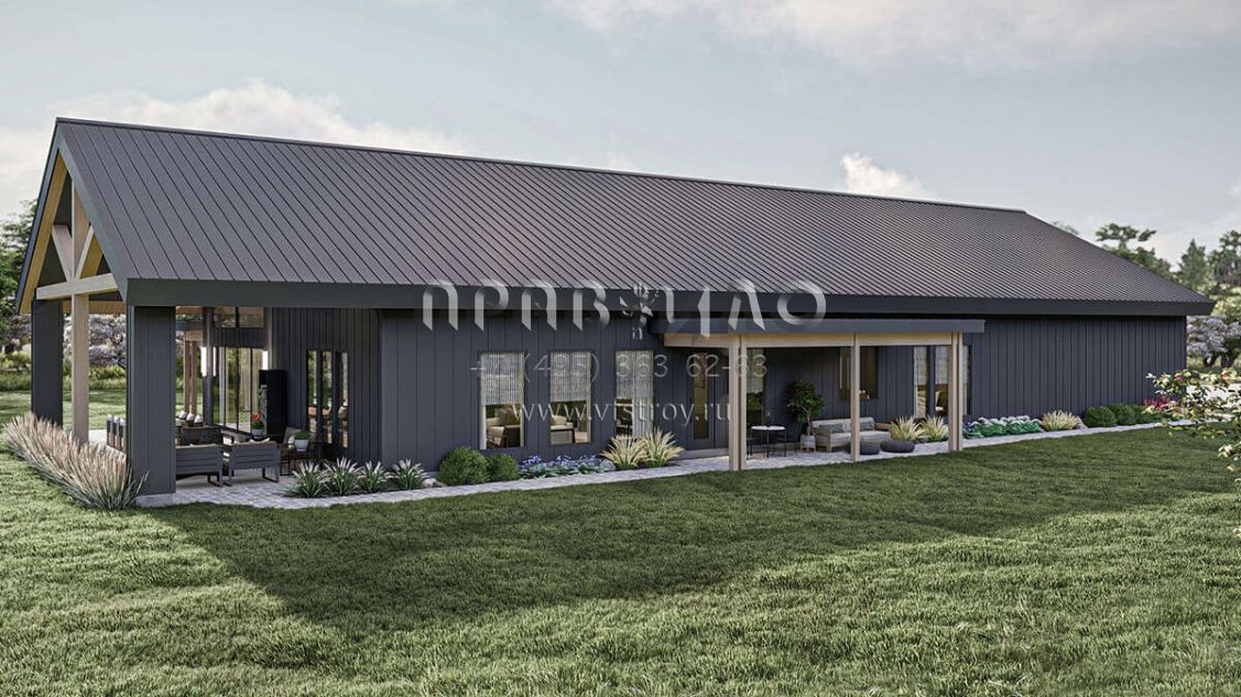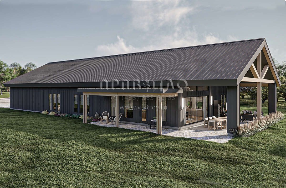 Проект одноэтажного дома с гаражом на три машины в стиле БарнХаус S5-253 (963-00859)