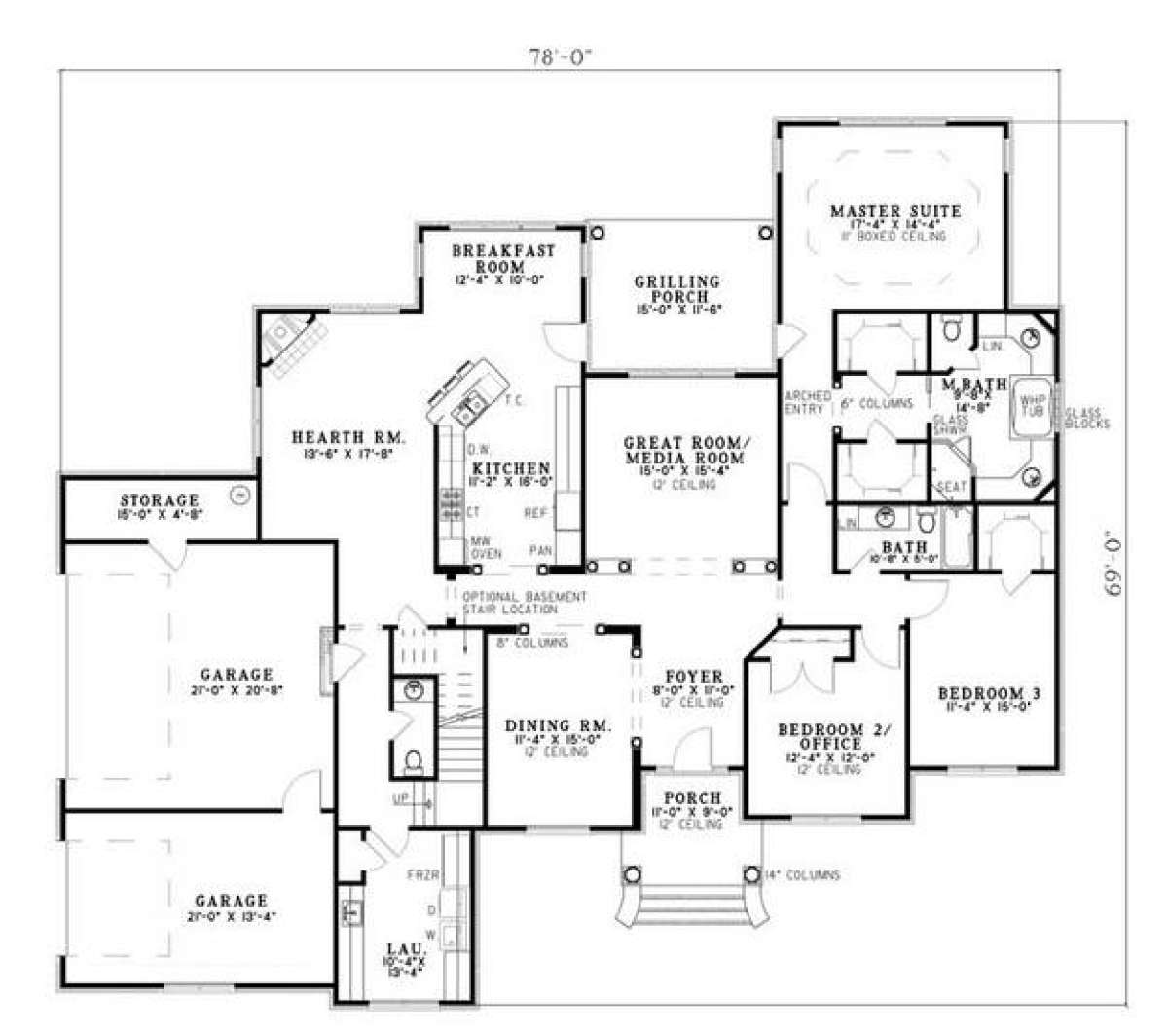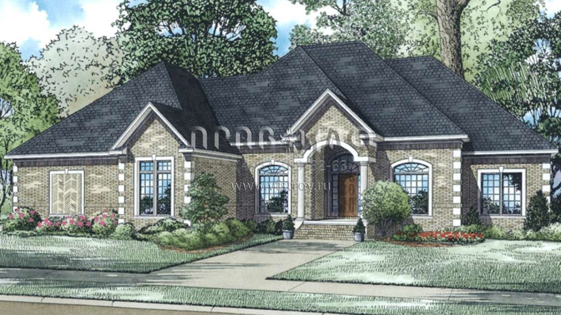 Проект двухэтажного дома с гаражом на три и более машин в стиле Ранчо S5-254 (110-00548)