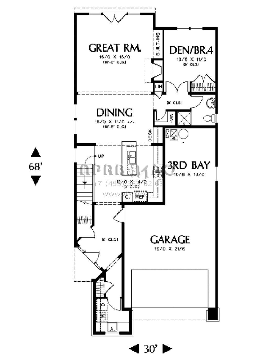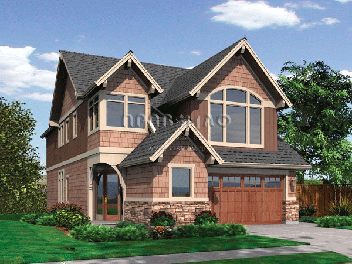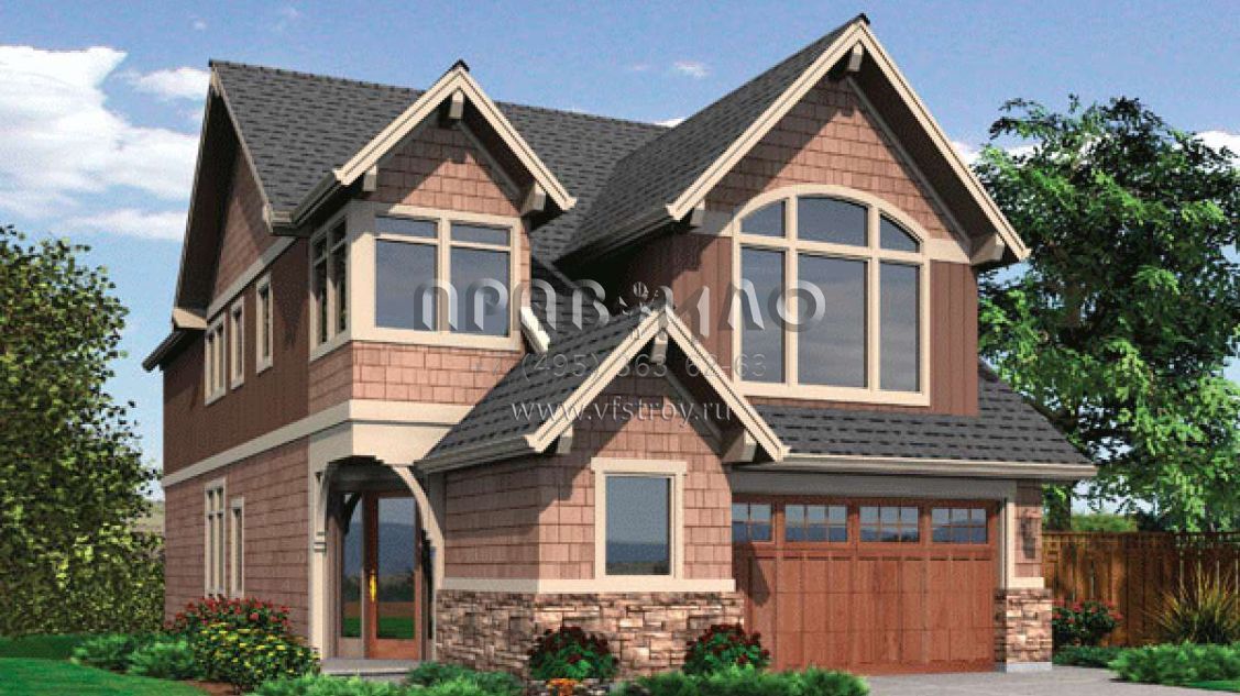Проект двухэтажного дома с гаражом на две машины в стиле Ранчо S5-254 (2559-00400)