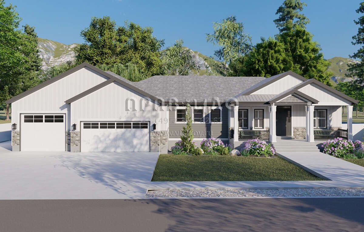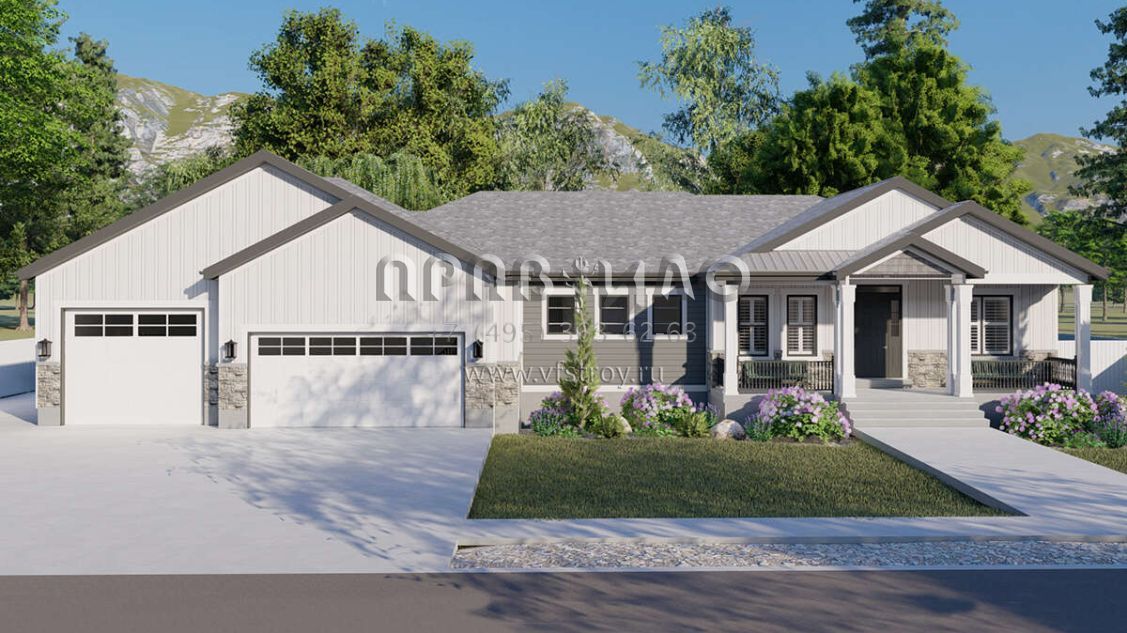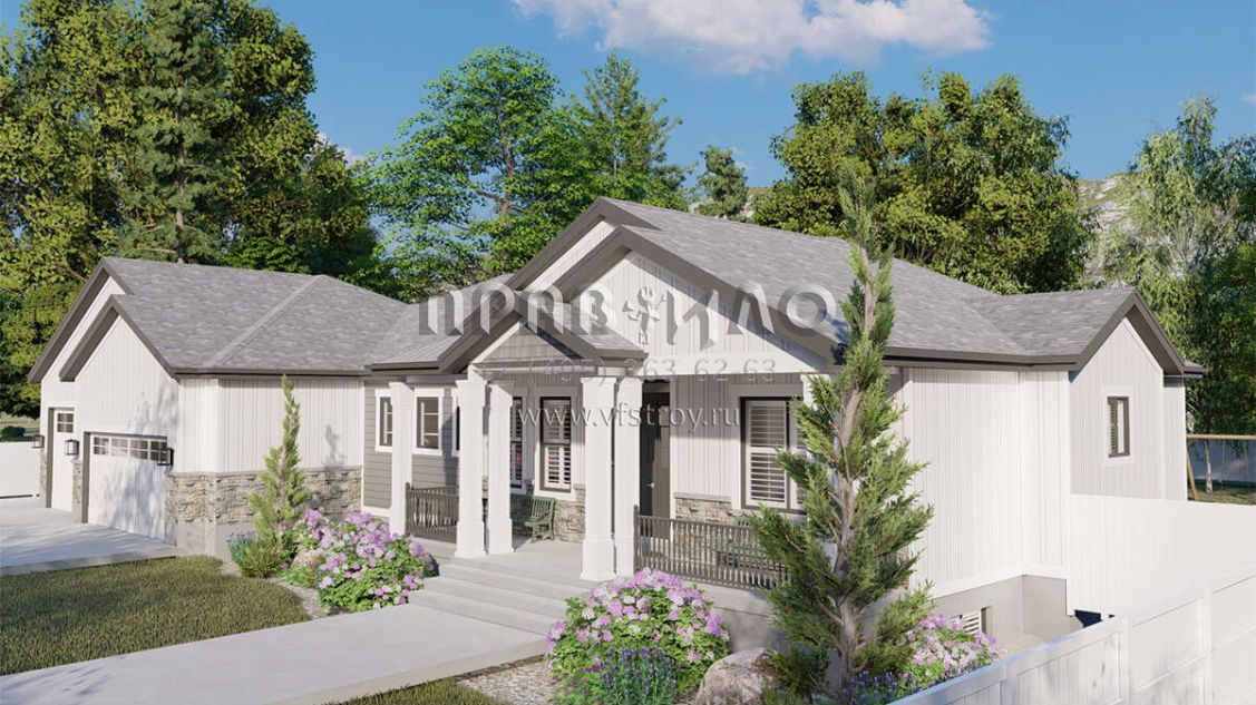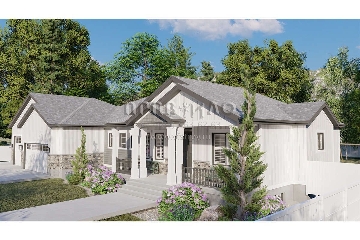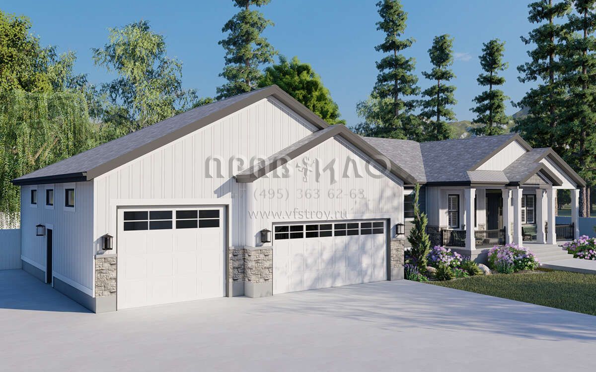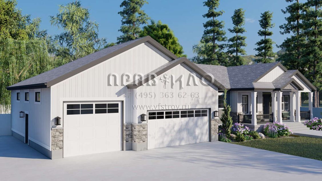 Проект одноэтажного дома с гаражом на три и более машин в американском стиле S5-254 (2802-00218)