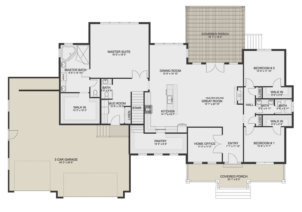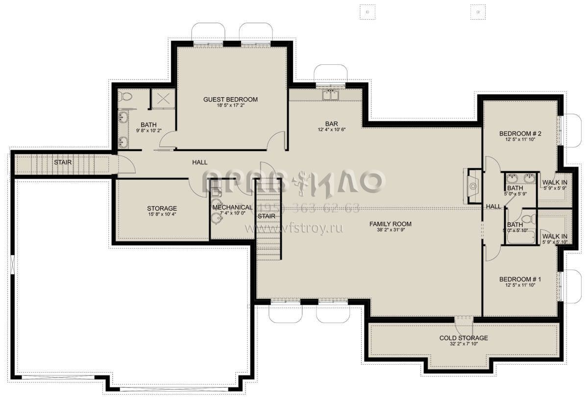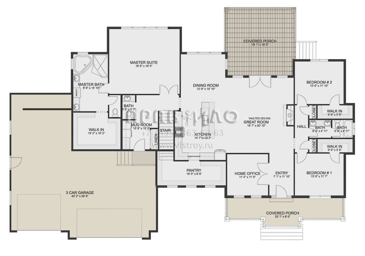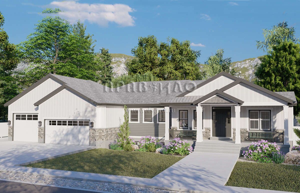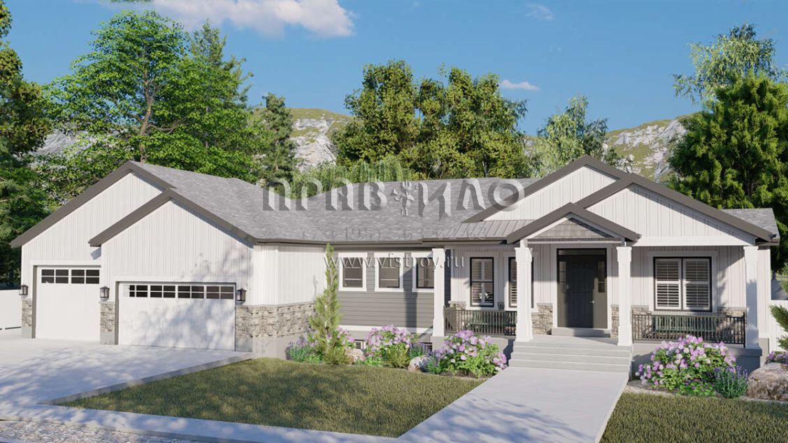 Проект одноэтажного дома с гаражом на три и более машин в американском стиле S5-254 (2802-00218)