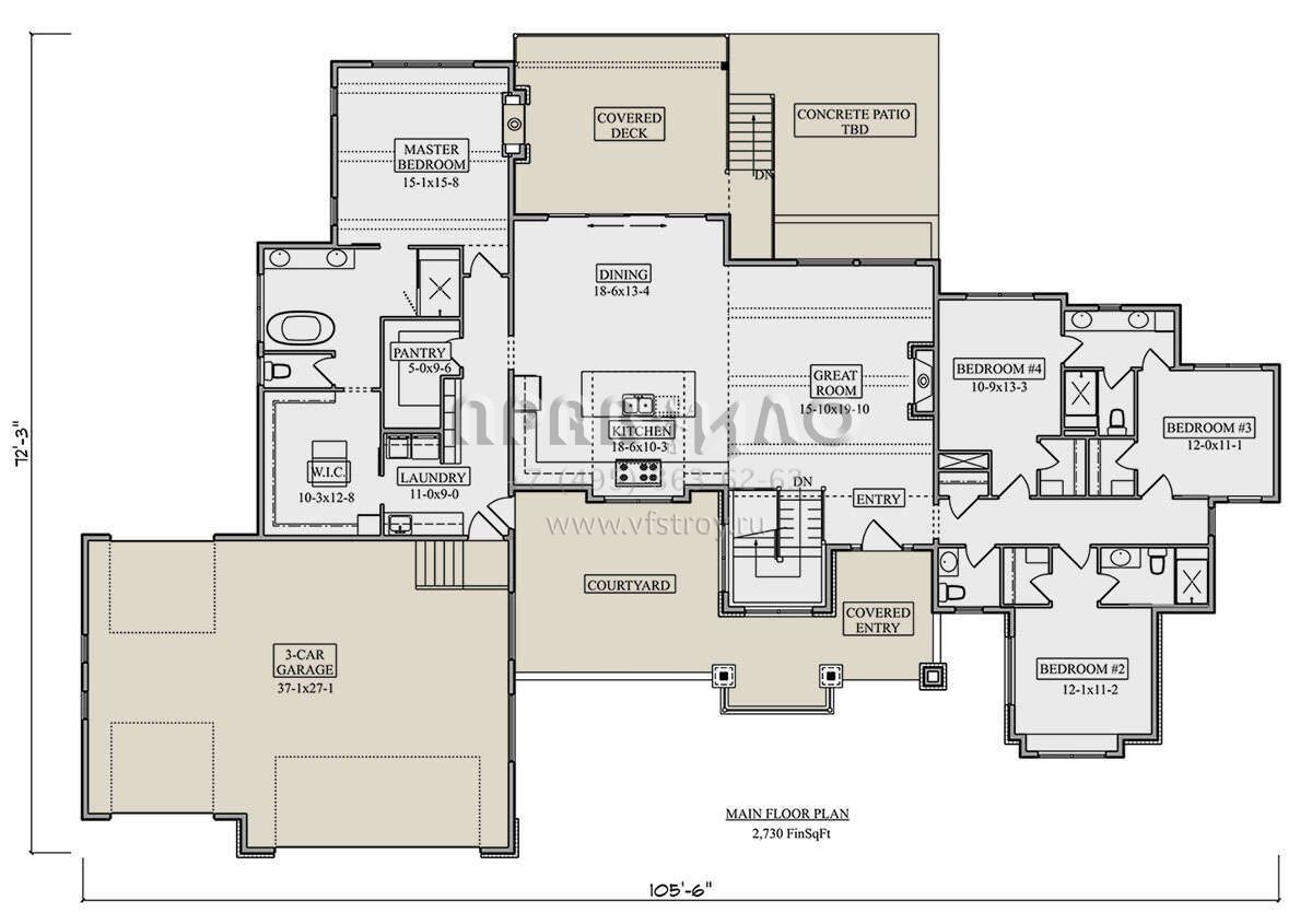 Проект одноэтажного дома с гаражом на три и более машин в современном стиле S5-254 (5631-00241)