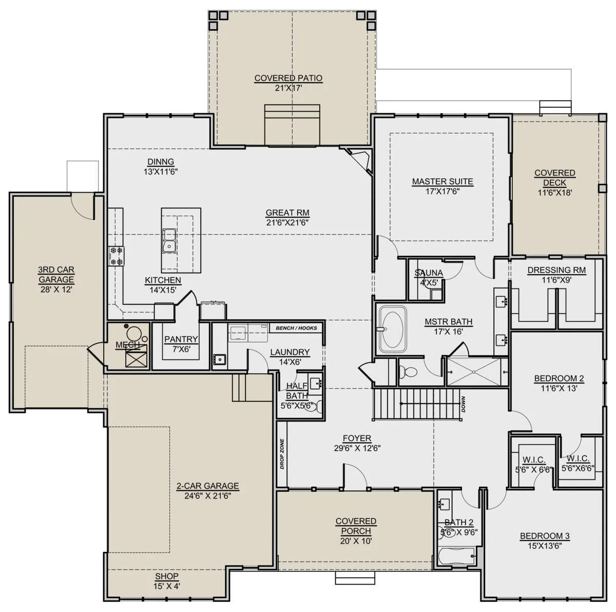 Проект одноэтажного дома с гаражом на три и более машин в американском стиле S5-254 (7306-00015)