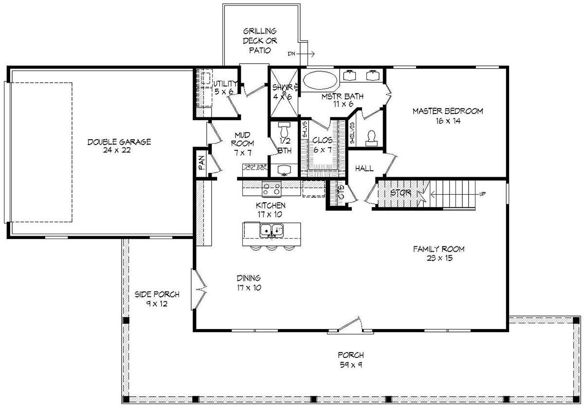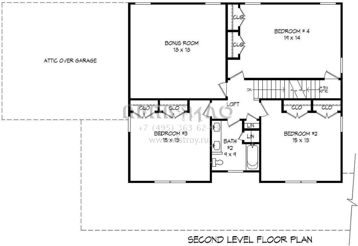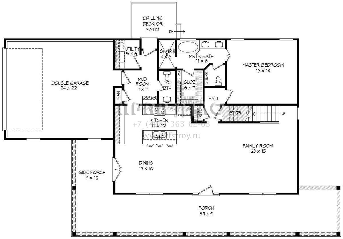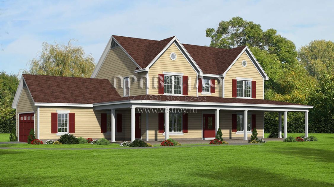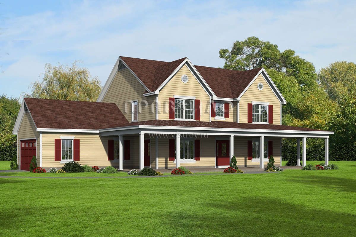 Проект двухэтажного дома с гаражом на две машины в стиле Ранчо S5-254 (940-00108)