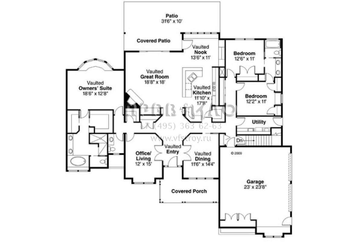 S5-255 (035-00648) Это иностранный проект, для которого требуется адаптация под нормы, действующие в Российской Федерации. Вы видите проект дома в стиле Ранчо. В этом доме сочетаются черты сельской постройки и аскетичность лофта. Внутри жильцы смогут проводить время с максимальным комфортом. Обратим внимание, что сейчас на планировках все размеры представлены в футах. Для перевода в метры вам необходимо значение в футах умножить на 0,3048.